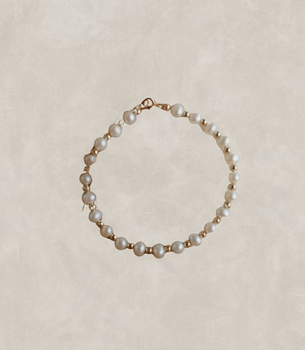 Elevate your style with our Alyssa bracelet, a perfect blend of classic elegance and modern sophistication. Crafted with attention to detail, this bracelet features lustrous freshwater pearls delicately interspersed with polished sterling silver or 14k gold filled beads, creating an eye-catching contrast that exudes timeless charm.