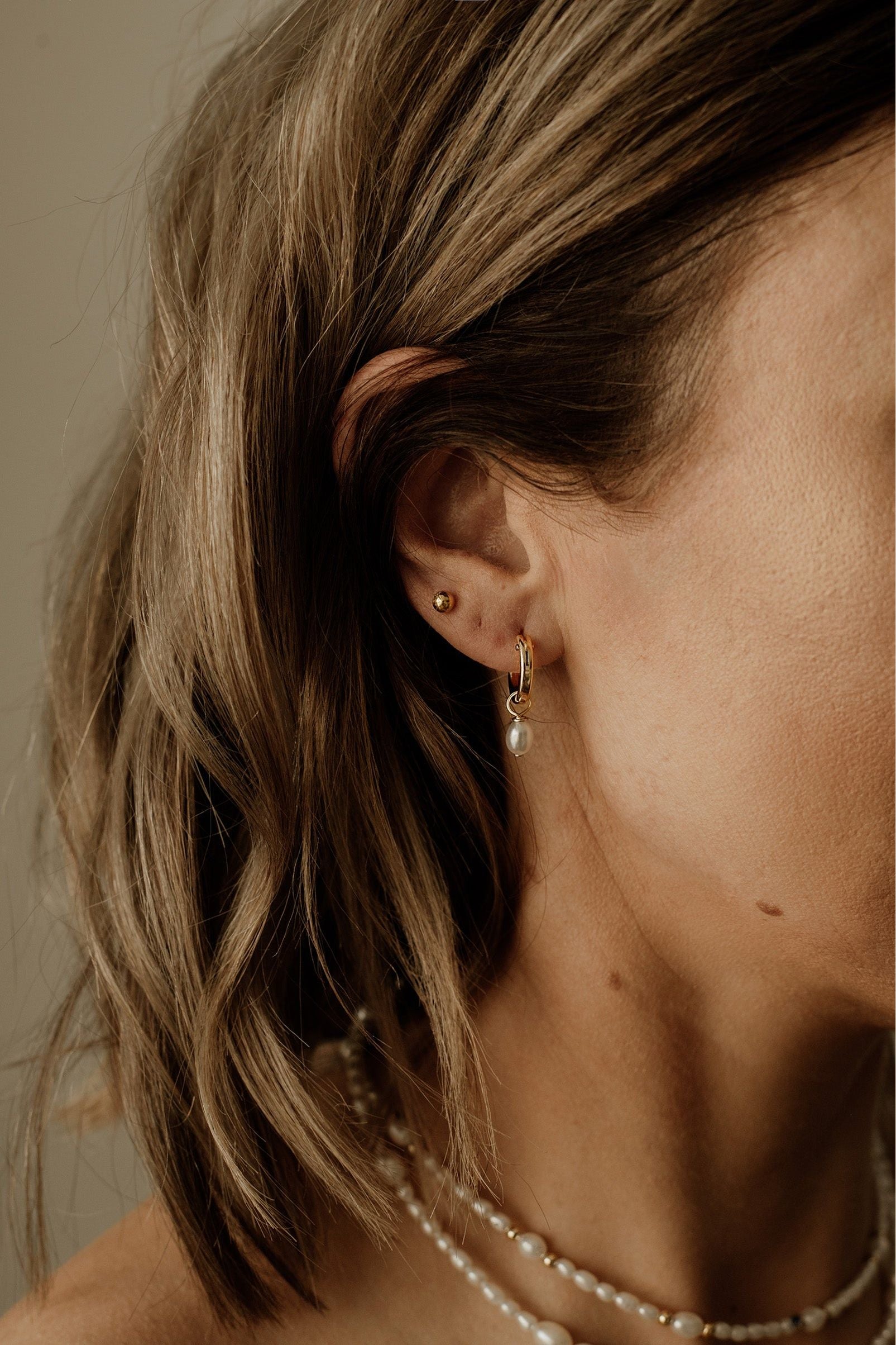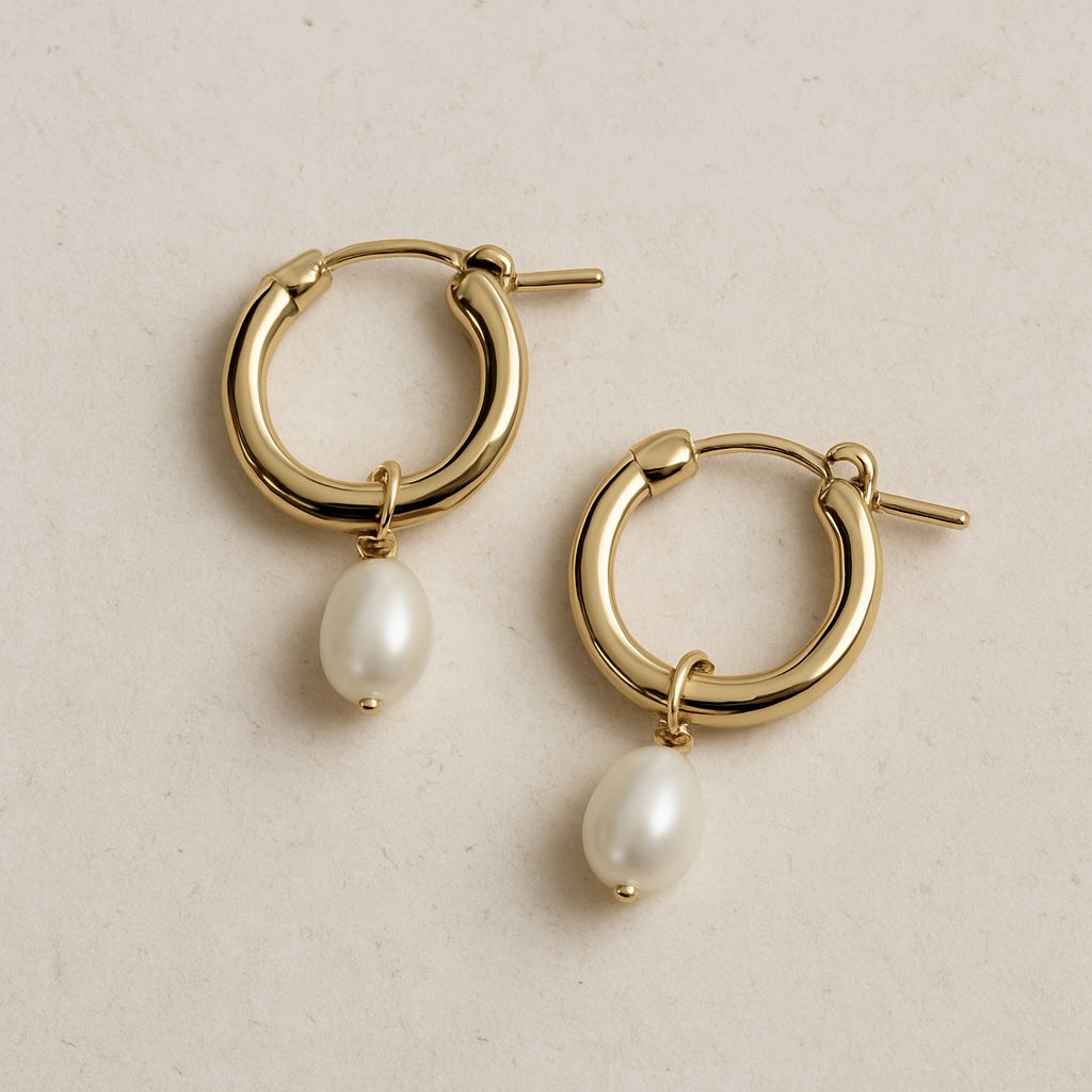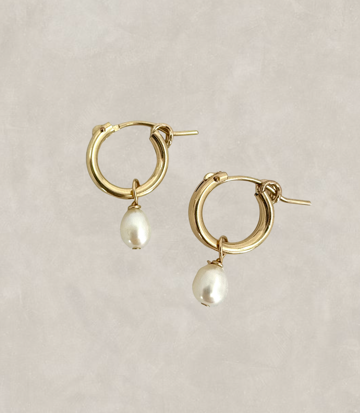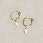 Sweet petite Ariyah - 15mm hinged hoop featuring tiny rice pearl drop. Perfect for someone looking for an easy wearing, understated, everyday piece.