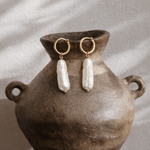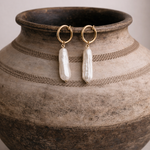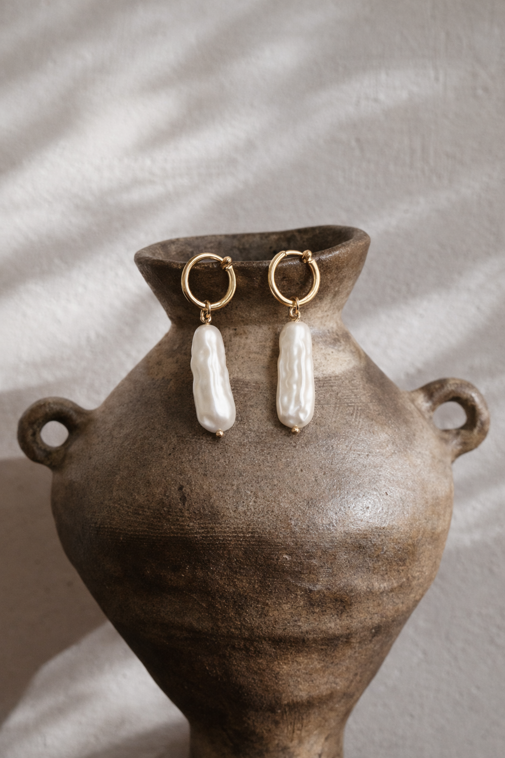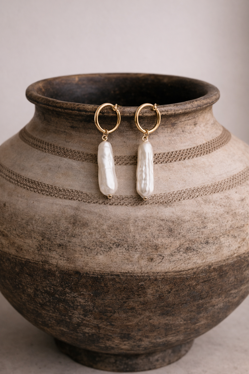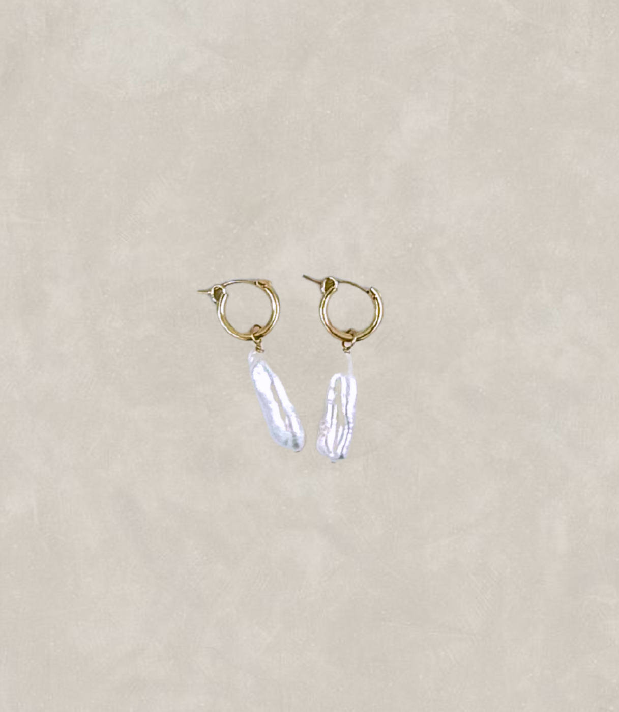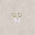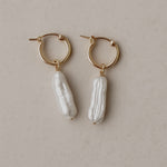 Audrey is a ball of flirty and fun. 15mm hinged hoop featuring long baroque pearl drop. This piece can be worn with or without the pearls as they are fully detachable. Bonus right...?