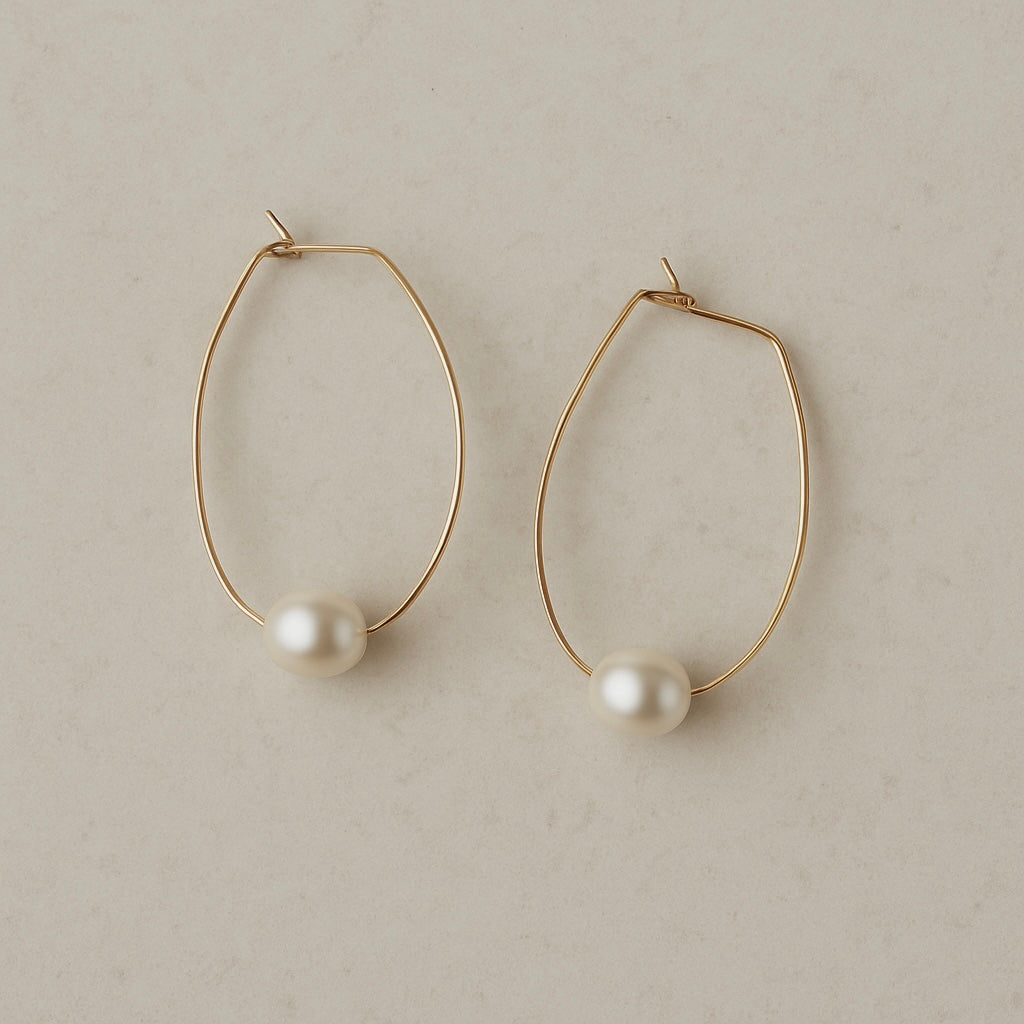 Sweet Bessie. Easy and light wearing piece incorporating 14k gold filled, sterling silver or rose gold filled wire and large freshwater irregular baroque pearl. Approx size large-4cm wide by 6cm drop, baby- 4cm wide by 3cm drop.