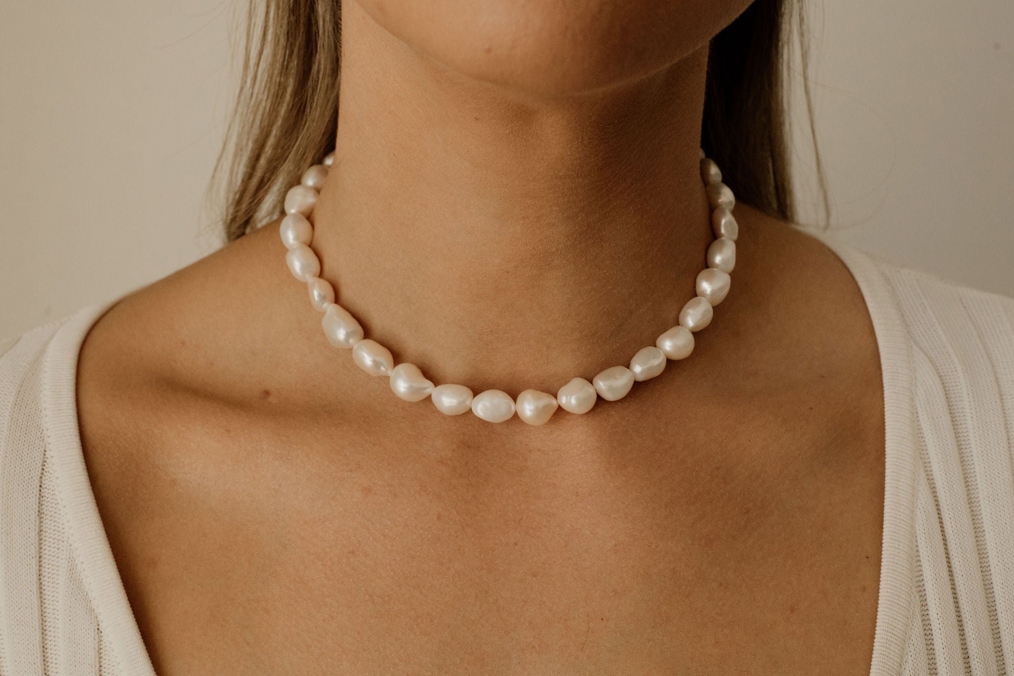Rock everyone’s socks off with this stunning handmade freshwater pearl necklace. Made using 10mm freshwater irregular baroque pearls on your choice of platinum or 14k gold plated hardware.