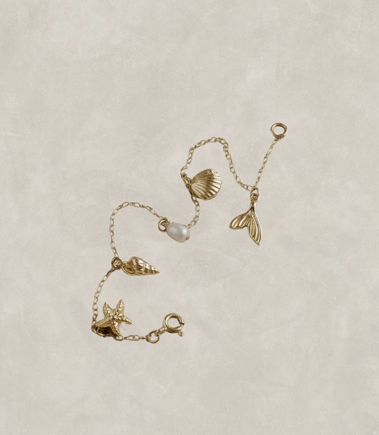Dive into the enchanting world of the ocean with our exquisite Charm Bracelet. Crafted with meticulous attention to detail, this elegant piece features a stunning array of sea-inspired charms, including delicate shells, a shimmering pearls and a playful fish tail.