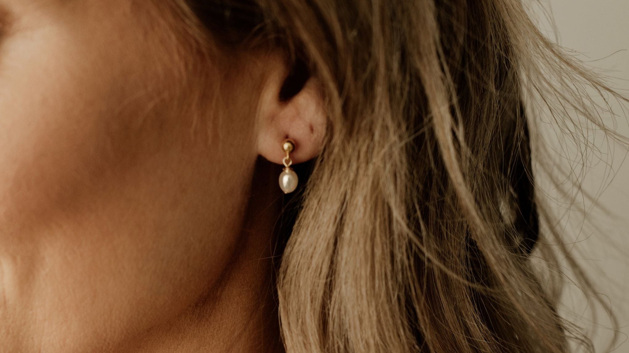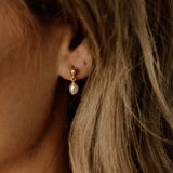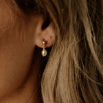 Cindy - Single tiny freshwater rice pearl hung from 3-4mm ball post stud in sterling silver or 14k gold filled. Match back with Serenity anklet, bracket and Winnie necklace.