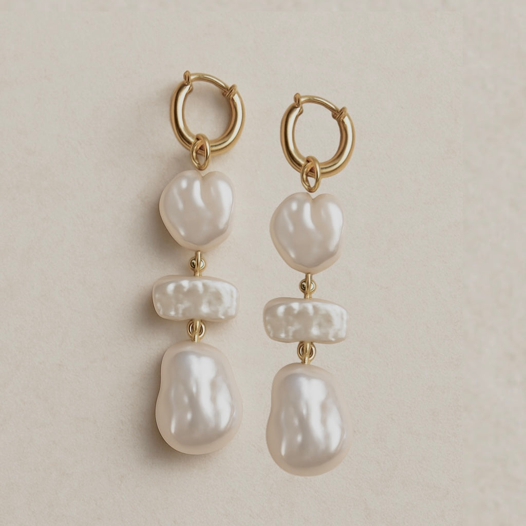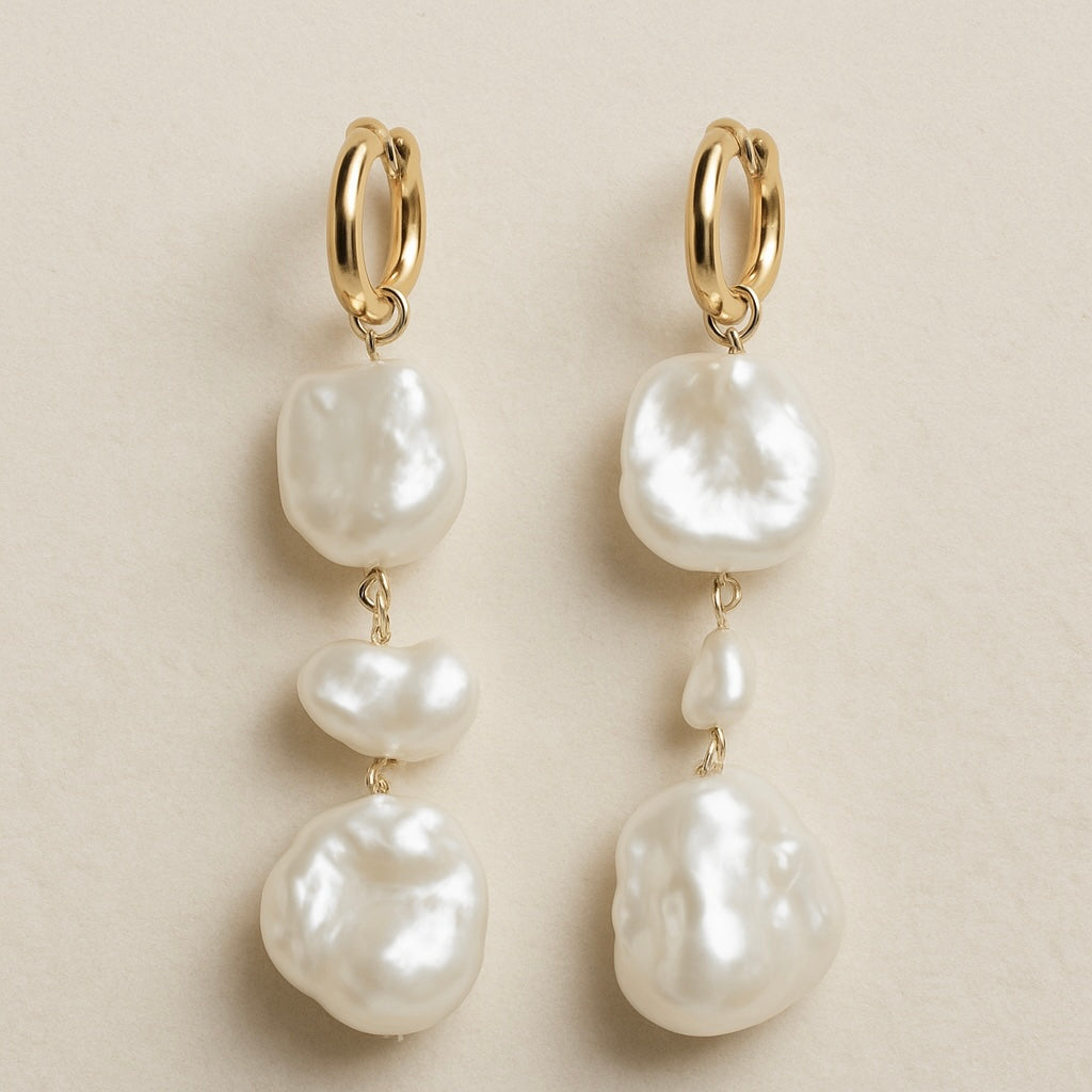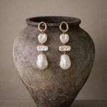 Elevate your jewelry collection with our CLEOPATRA Drop Earrings, a stunning blend of natural beauty and contemporary design. Crafted from exquisite baroque, Keshi and Biwa pearls, these earrings showcase the unique shapes and luster of each pearl, ensuring that no two pairs are alike.