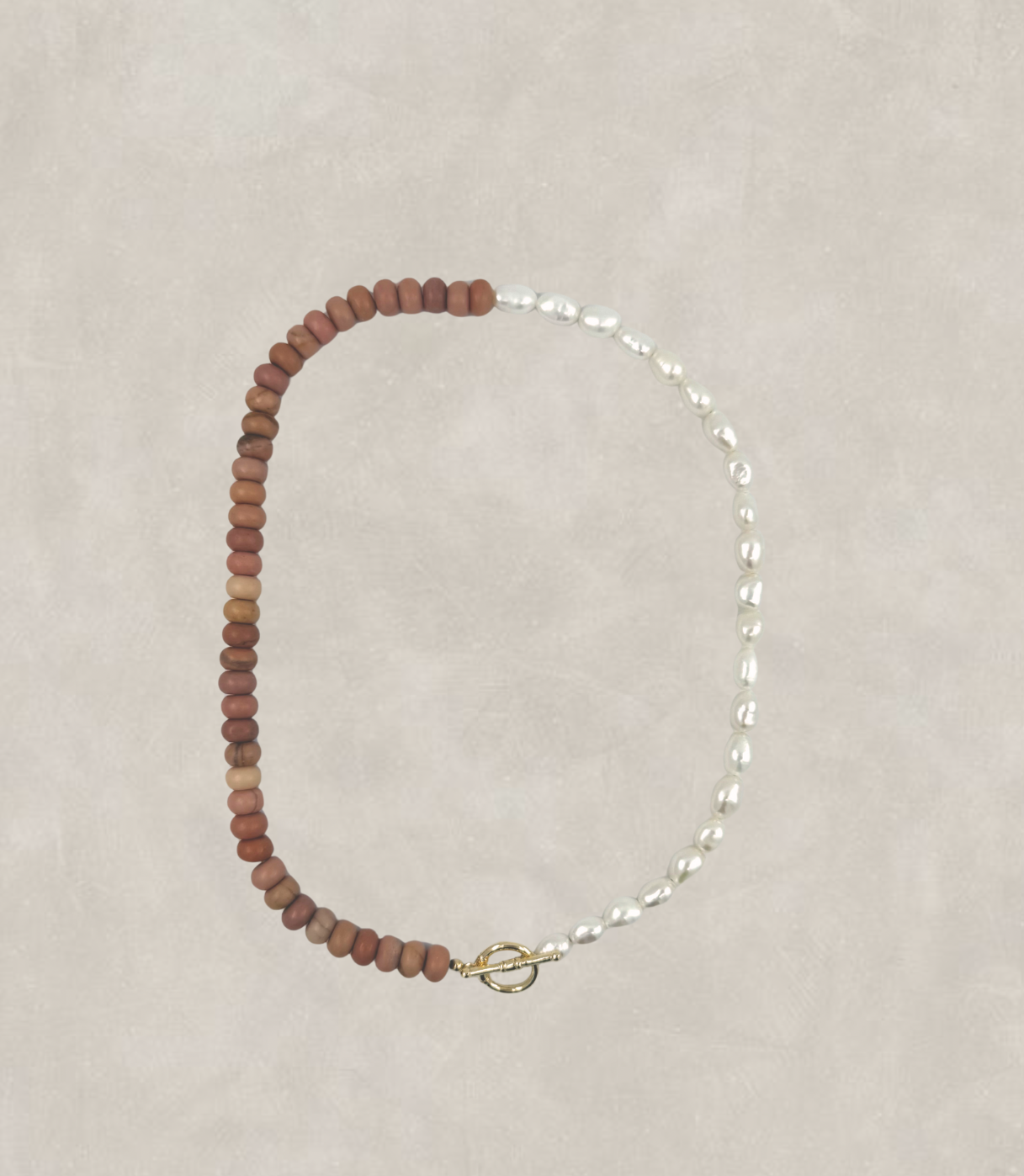 Our Avery Stone x Pearl necklace is a versatile piece that can elevate your look for any occasion. Whether worn as a statement piece or layered with other jewellery, it embodies timeless charm and beauty.