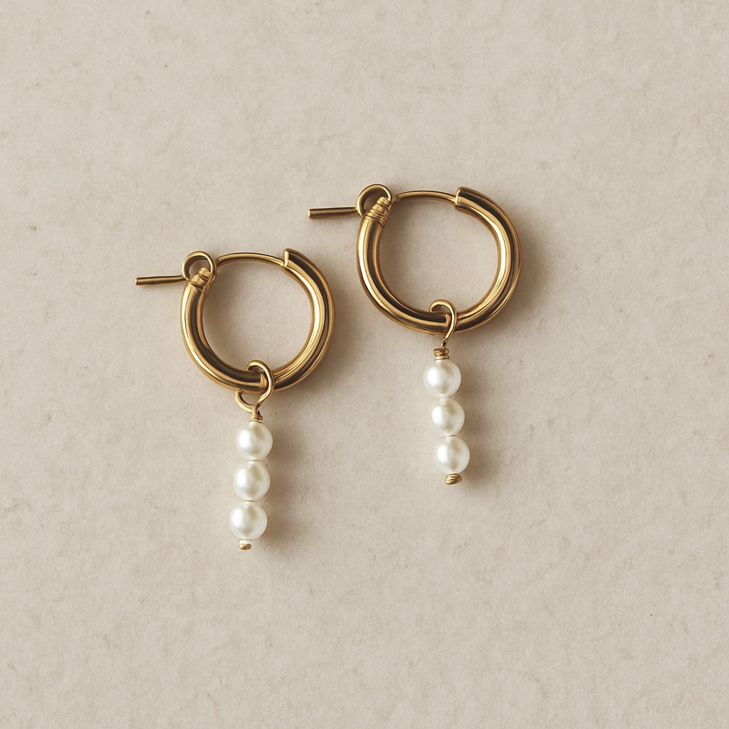 Super sweet Daisy incorporates a 15mm hinged hoop in your choice of sterling silver or 14k gold filled, featuring a drop of three tiny rice pearls.