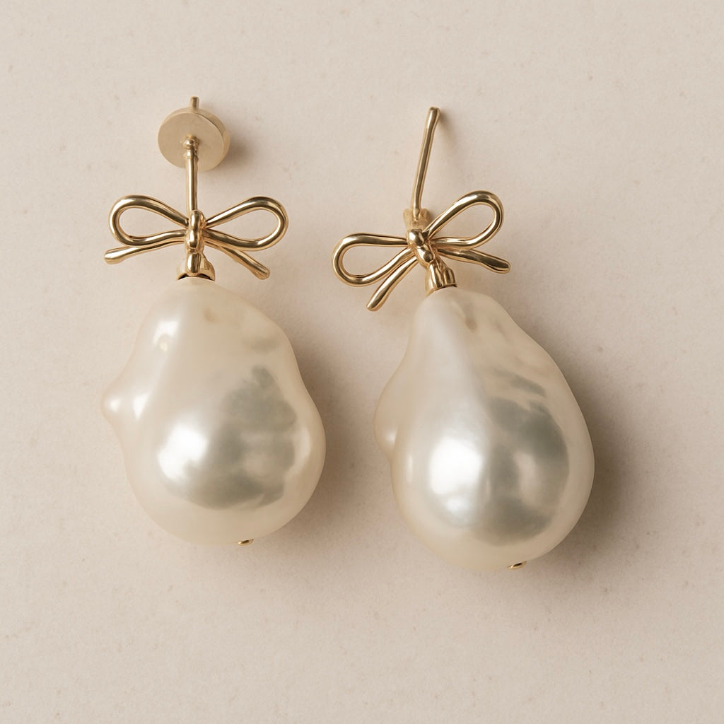 Embrace classic sophistication with our Darcy Bow Stud Pearl Earrings, seamlessly blending charm and elegance. The delicate bow design paired with lustrous nuclear baroque pearls makes these studs a perfect pairing for any occasion.