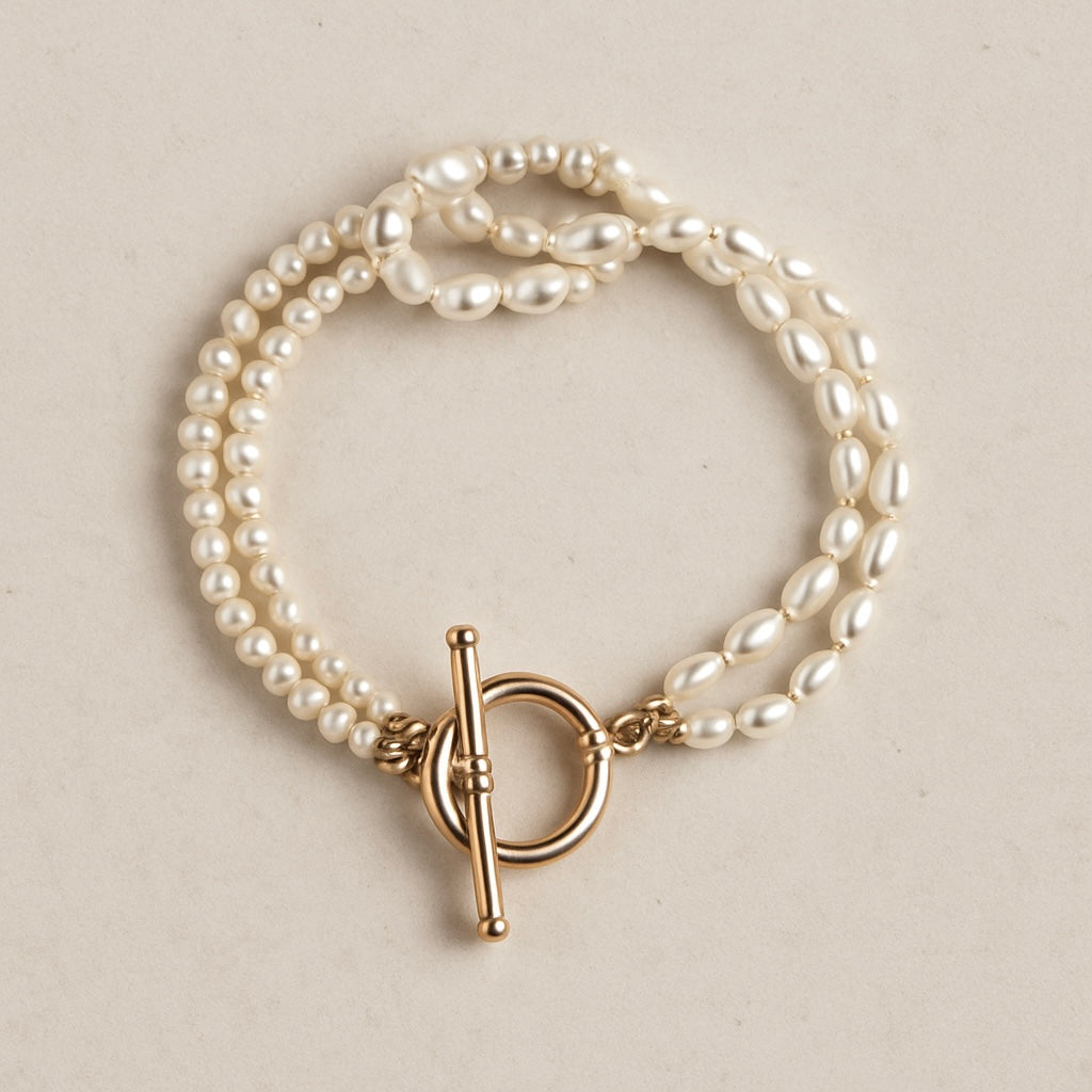Enhance your jewellery collection with our Debbie Double-Strand Knotted Pearl Bracelet, a refined accessory that exudes timeless charm. Crafted with delicately arranged pearls, this bracelet offers sophistication and grace.