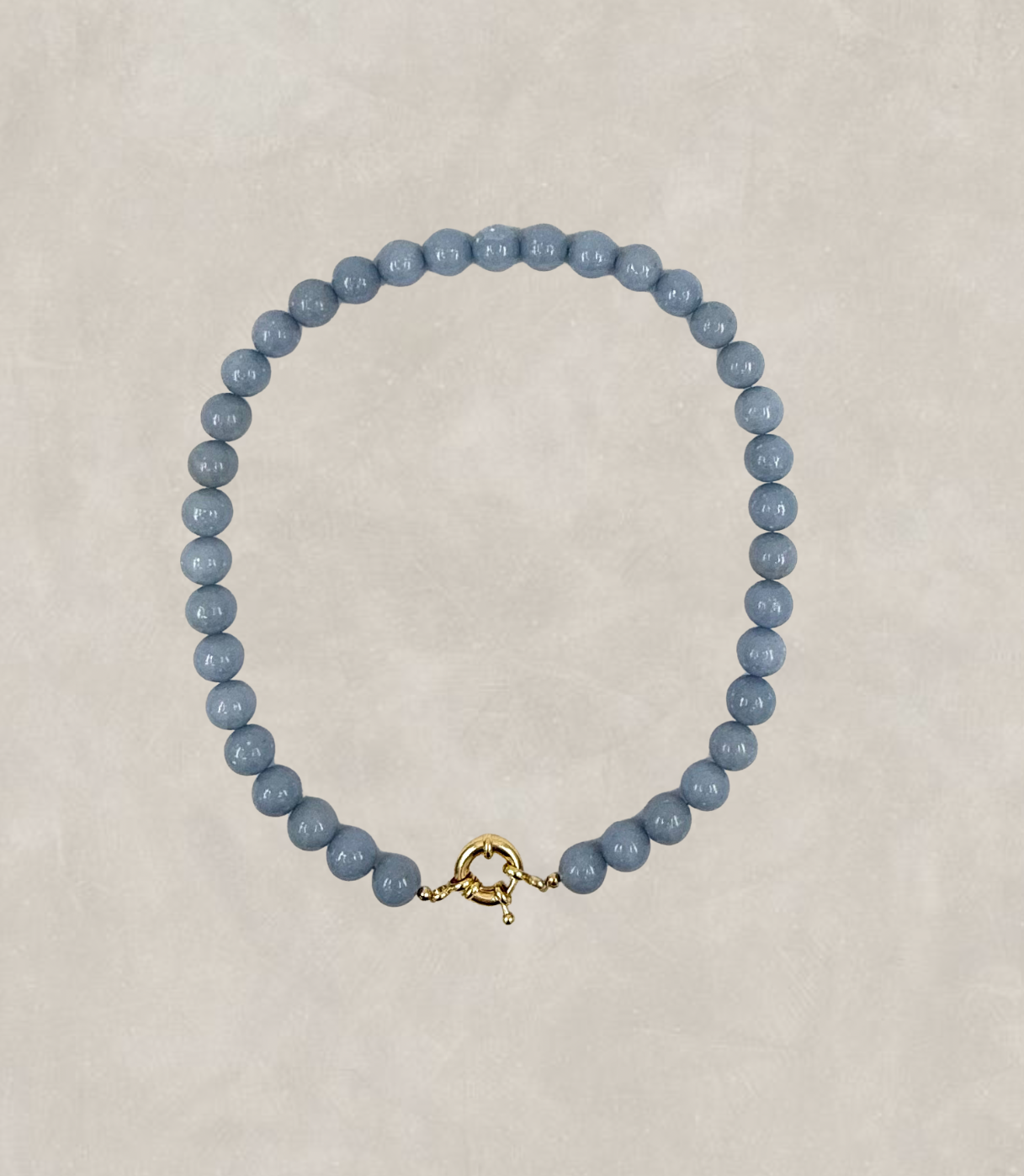 Discover the subtle elegance of our Demi stone necklace, a timeless piece that adds a touch of sophistication to any ensemble. Available in two lengths 16” or 18” (other sizes available upon request) finished with a 14k gold plated sailor clasp.
