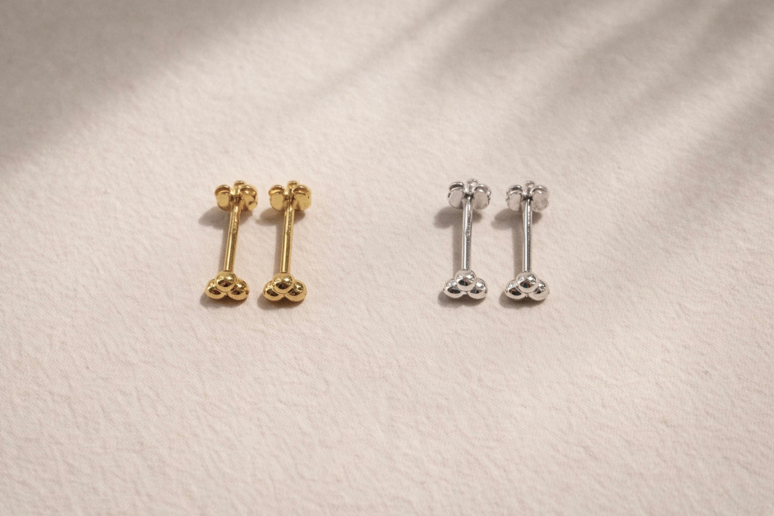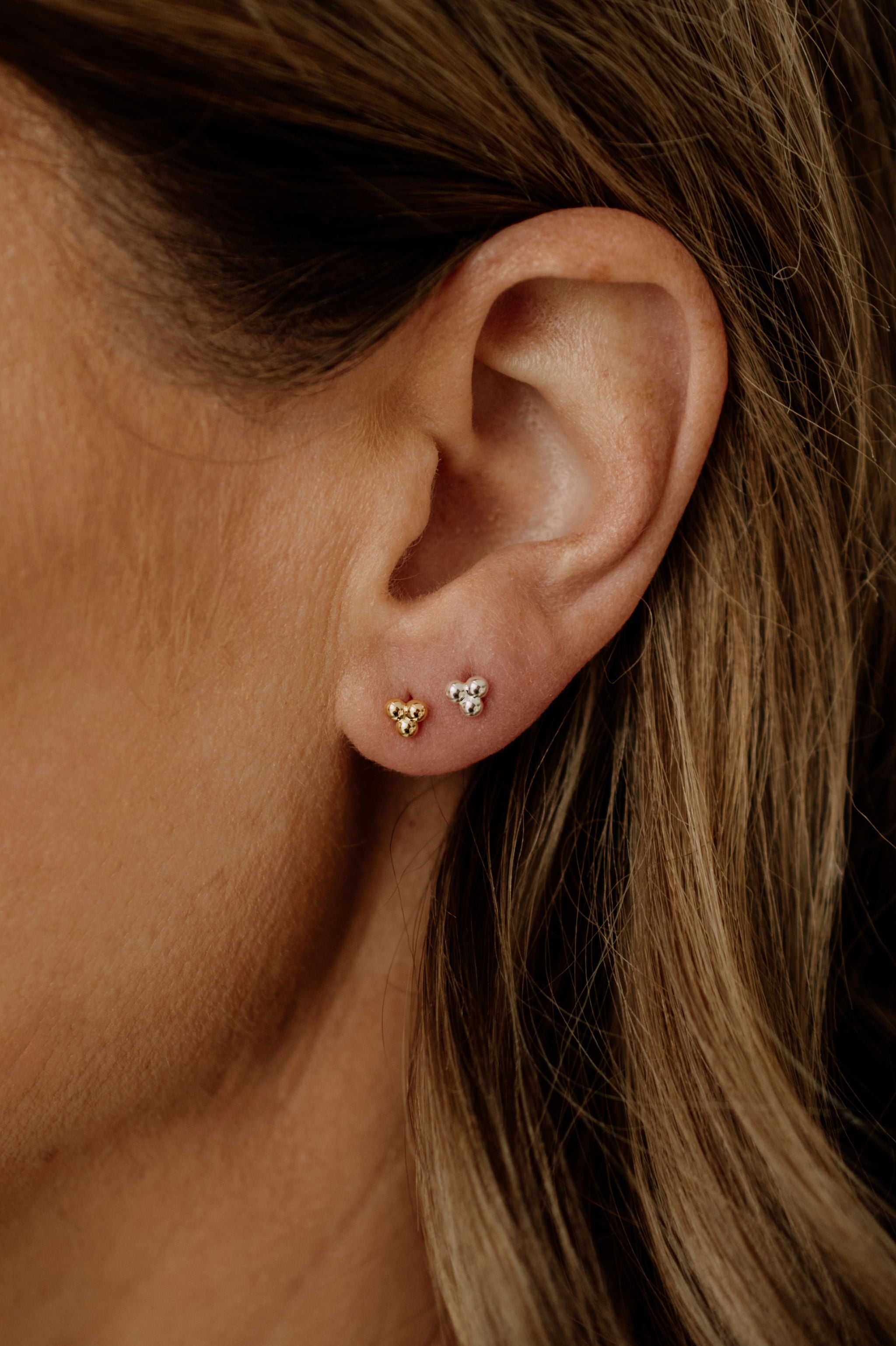 Embrace understated luxury with these Tri Studs, the perfect blend of modern design and classic elegance. Whether in gold or silver, these earrings are sure to become a cherished part of your jewellery collection.