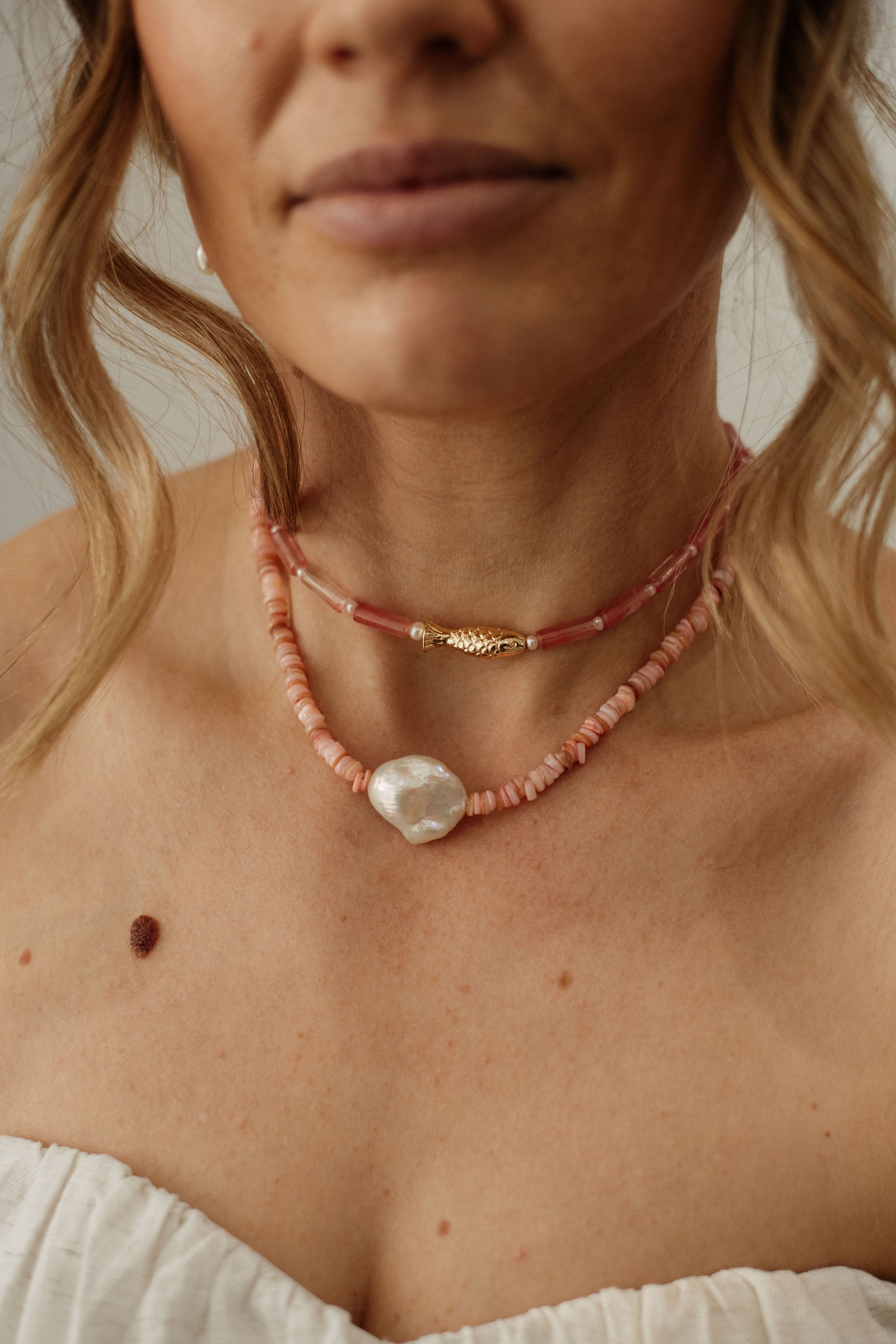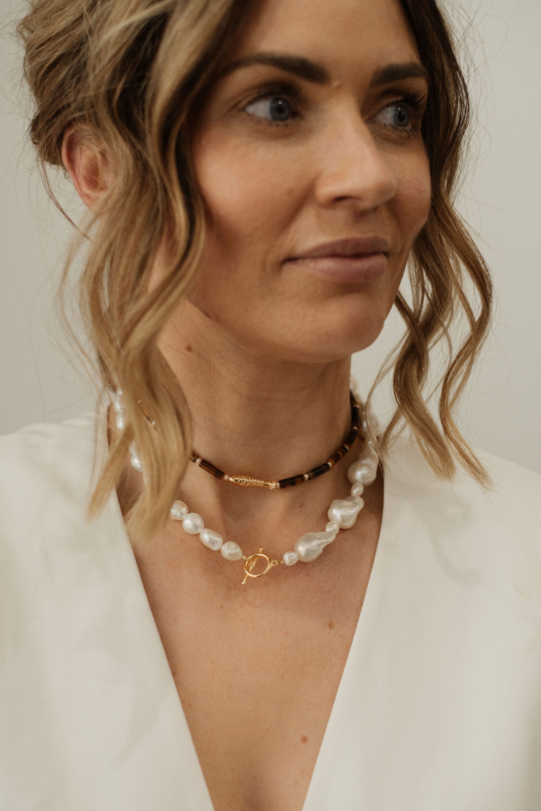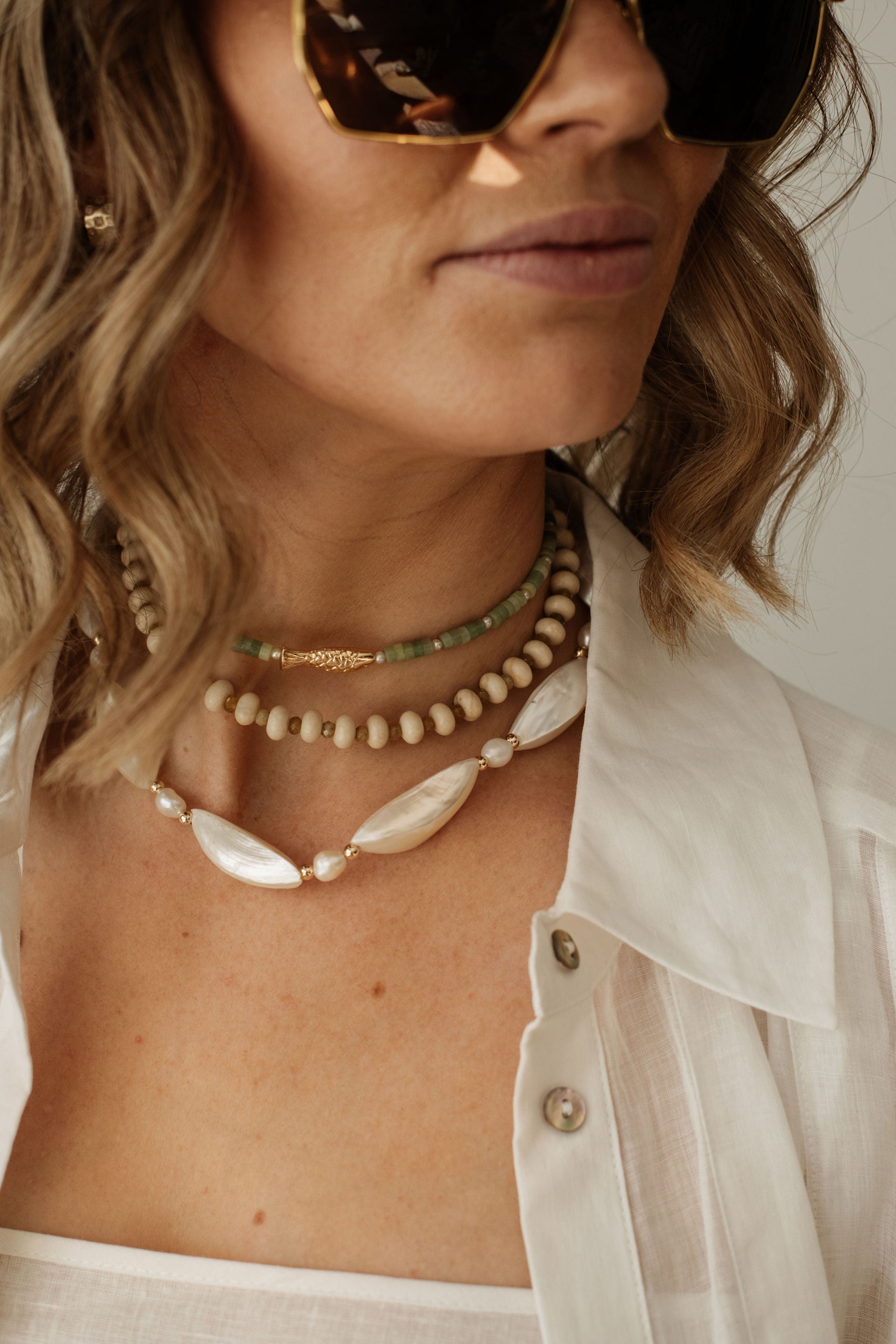 Add a touch of charm to your ensemble with our Maya Stone X Pearl Necklace. Crafted with attention to detail, this piece features uniquely shaped beads that offer a stylish and modern look.