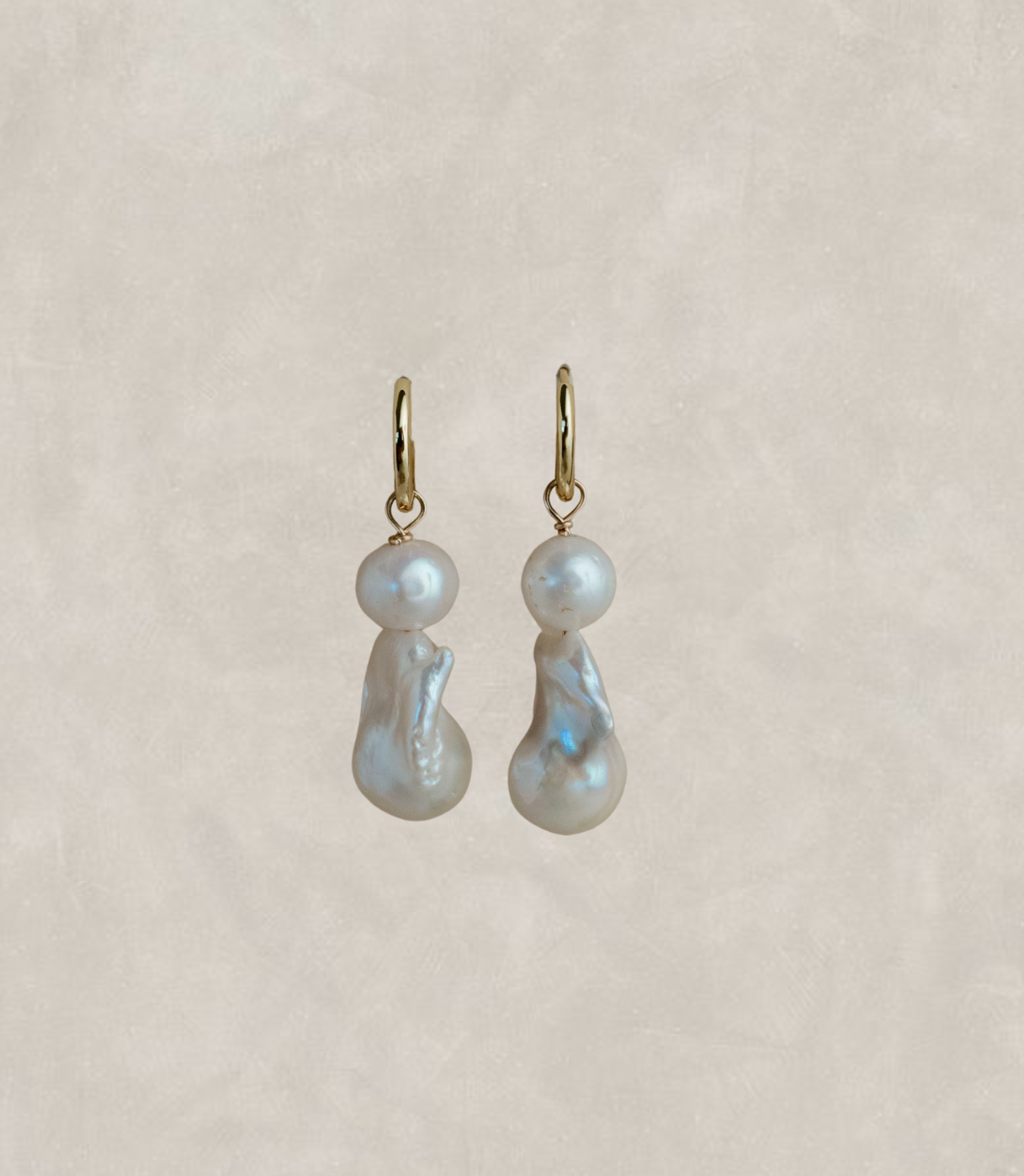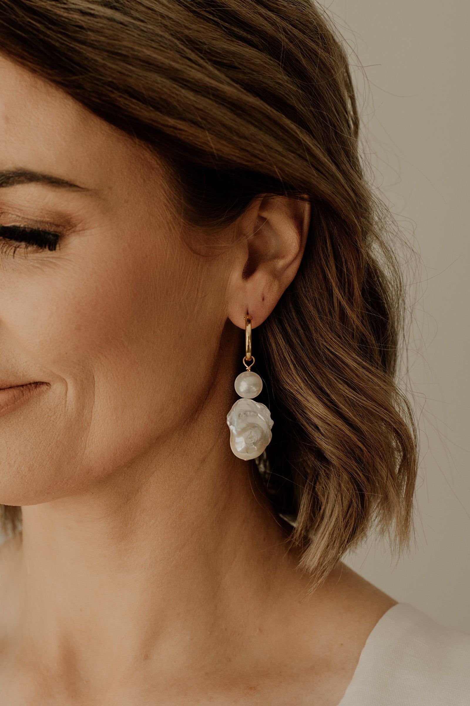 Elizabeth - A tribute to our beautiful Queen. 15mm hinged hoop featuring a large irregular baroque pearl and extra large nuclear baroque pearl drop. I knew when designing these they need to be elegant, sophisticated, royal and full of grace. I hope you think they hit the mark.