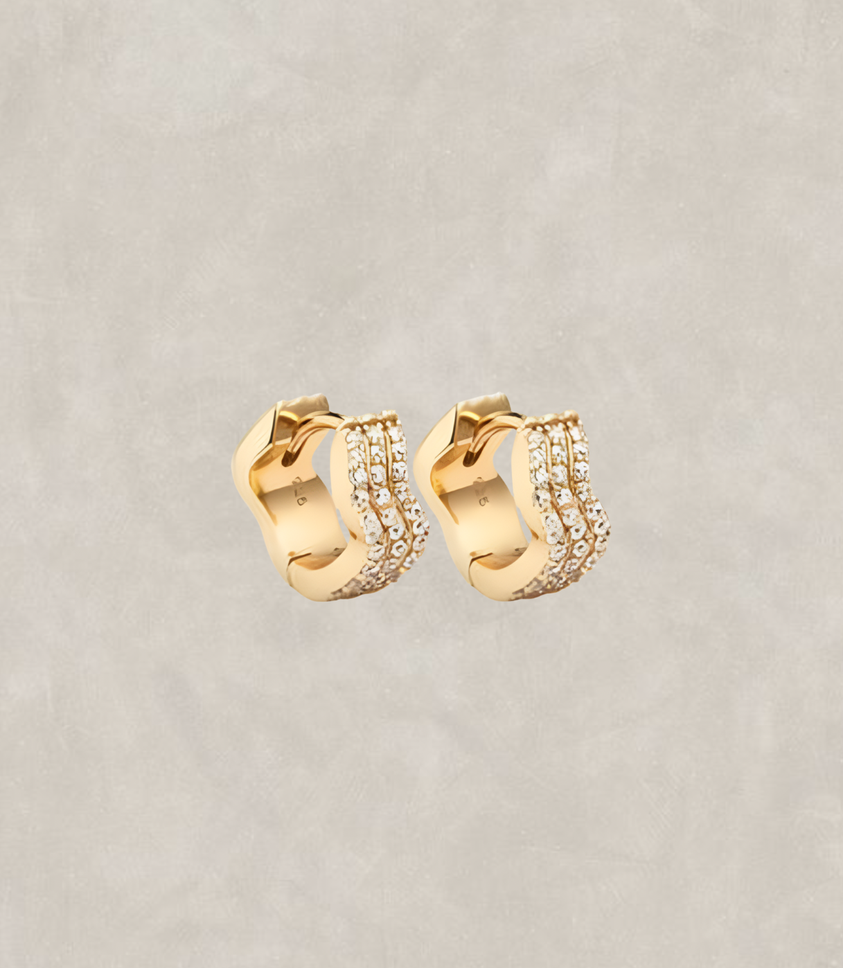Elevate your jewellery collection with these stunning Gold Hoop Earrings, with wave design, adorned with sparkling CZ crystals that catch the light beautifully. Crafted in high-quality 14k gold plating, these earrings boast a chic and modern design that exudes elegance and sophistication.