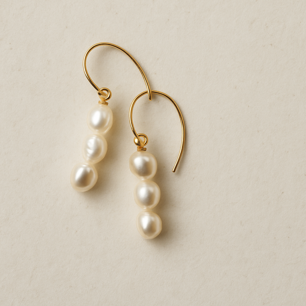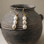 Beautiful Emmy is an elegant piece. She oozes sophistication. Three irregular baroque pearls strung on a sterling silver or 14k gold filled curved hook.