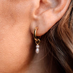 Elevate your style with our Elegant Pearl Drop Hoop Earrings. Crafted with precision, these hoops showcase a minimalist design that seamlessly blends sophistication with contemporary charm. Each earring features a radiant 13mm hinged hoop adorned with tiny delicate freshwater pearls, offering a subtle touch of elegance for any occasion.