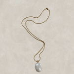 Our darling Eugenie is the most elegant piece that will remain timeless and on trend for many years to come. She comes in your choice of a 14k gold filled or sterling silver 2mm snake chain, in 18 or 20 inches in length. She is then topped off with a individually picked, extra large, freshwater nuclear baroque drop pearl drop that can be detached if desired.