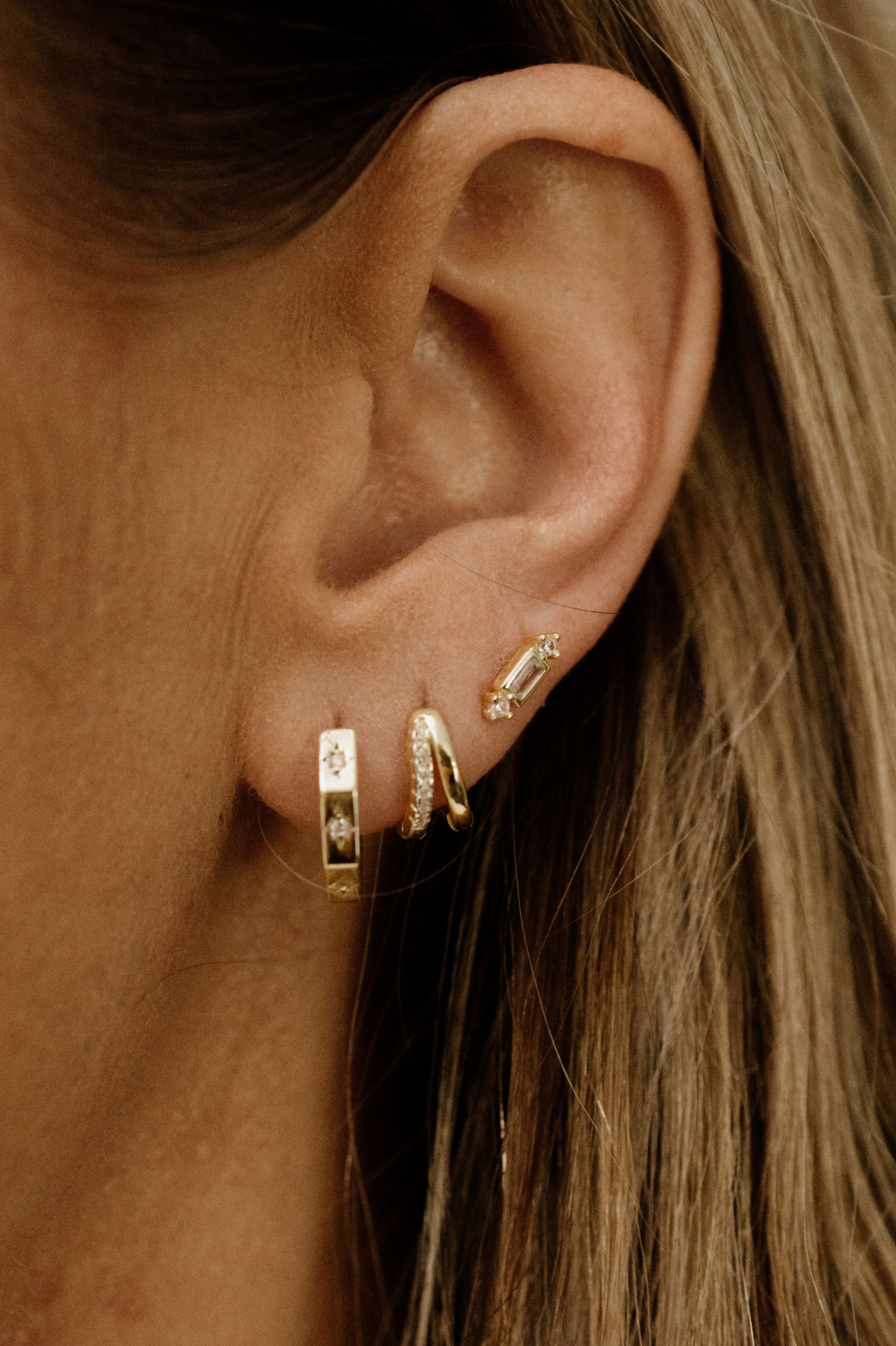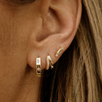 Elevate your accessory game with our stunning Gold CZ-Embellished Hoop Earrings. Crafted from high-quality 14k gold Plated or sterling silver metal, these earrings capture a modern geometric design that perfectly balances elegance with contemporary flair.