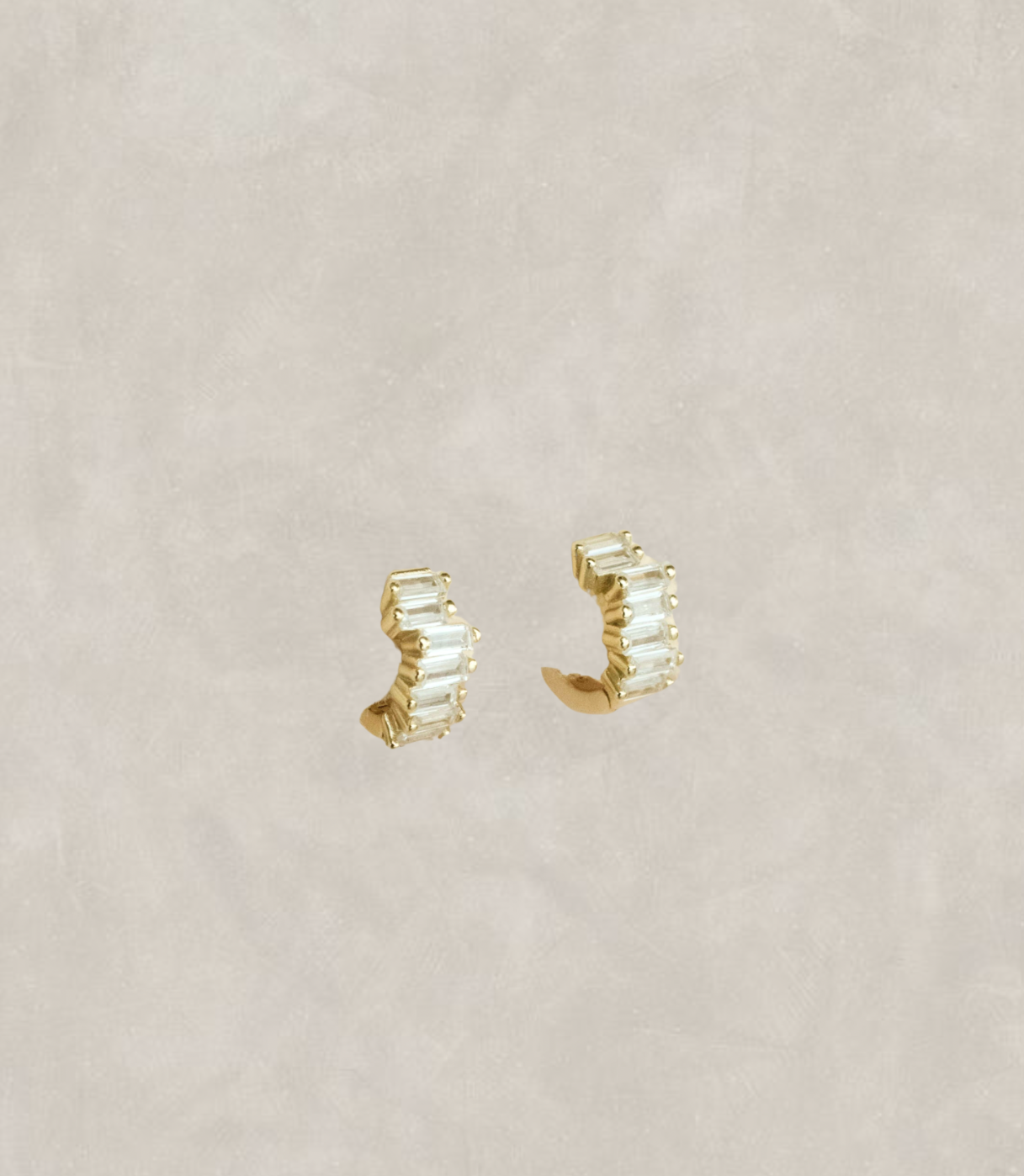 The most stunning teeny tiny huggies you ever did see. Pictured here in the top hole of the lobe.