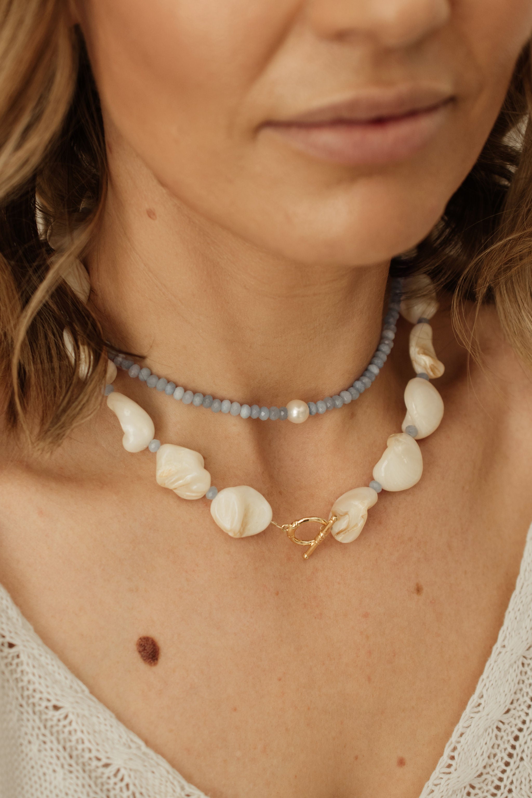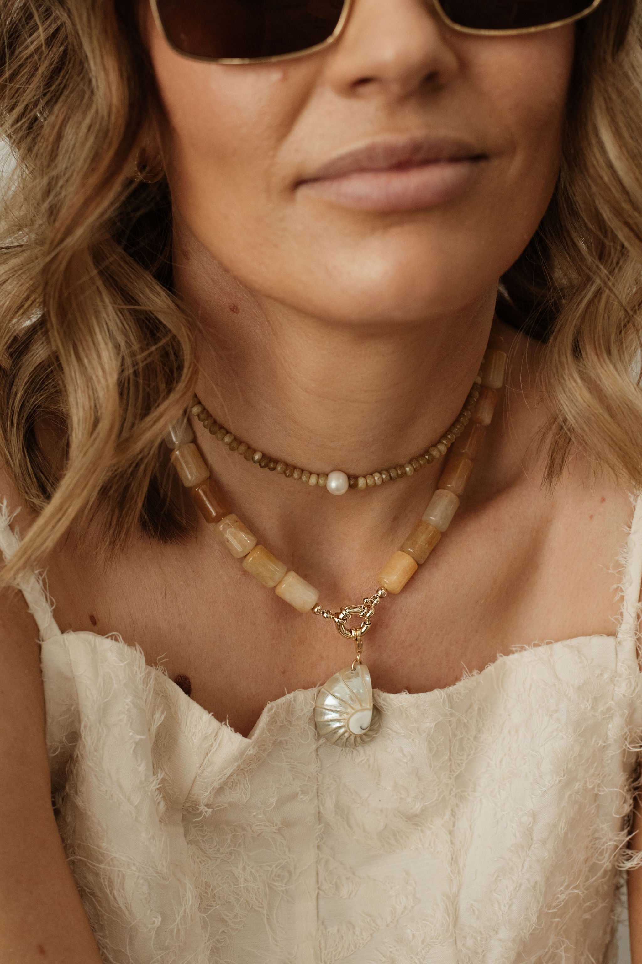 Elevate your style with our Eva Glass Bead x Pearl Necklace. Designed for versatility and sophistication, this necklace features small faceted, glass beads then finished with a freshwater pearl adding that refined but fun touch to any outfit.