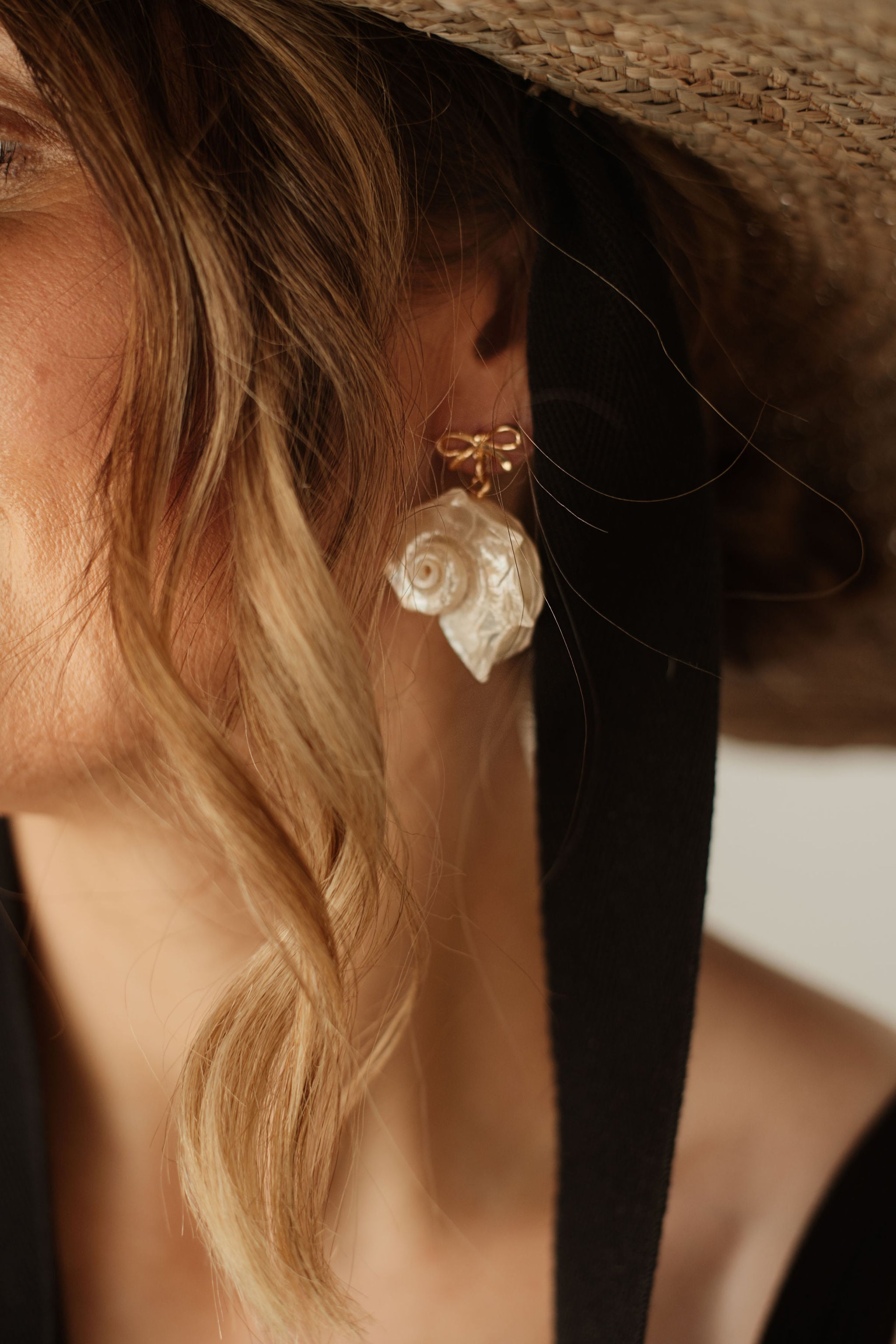 Dive into coastal charm with these Conch Shell Earrings, capturing the essence of the sea in a sophisticated design. With their lustrous finish and delicate detailing, these earrings offer a breezy yet elegant touch to any outfit.