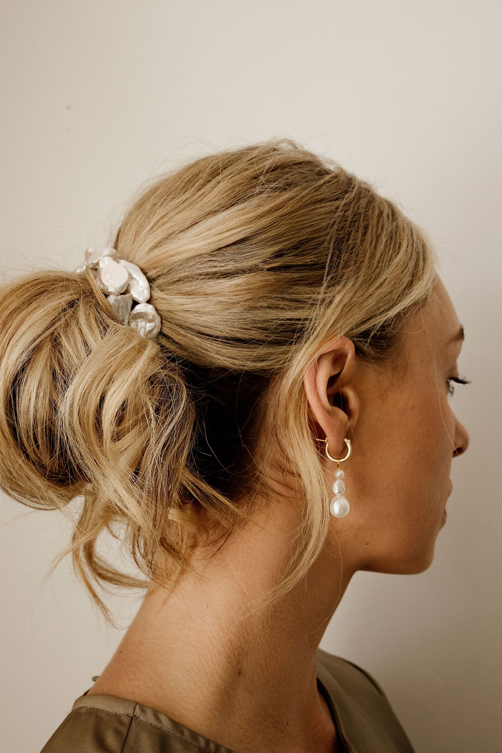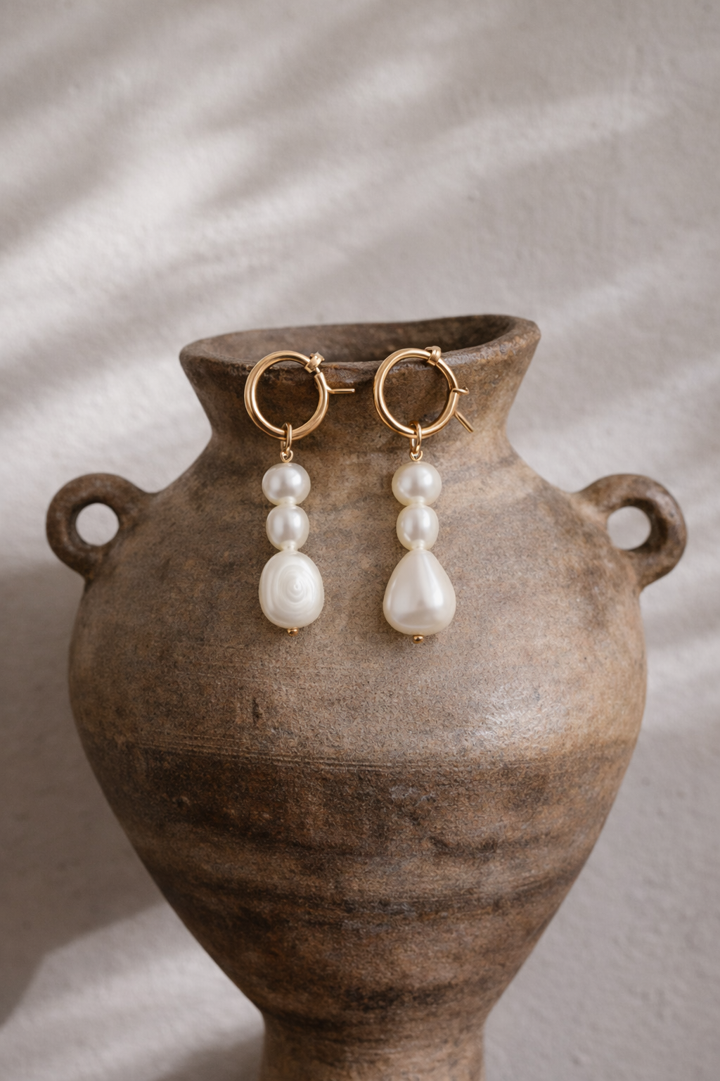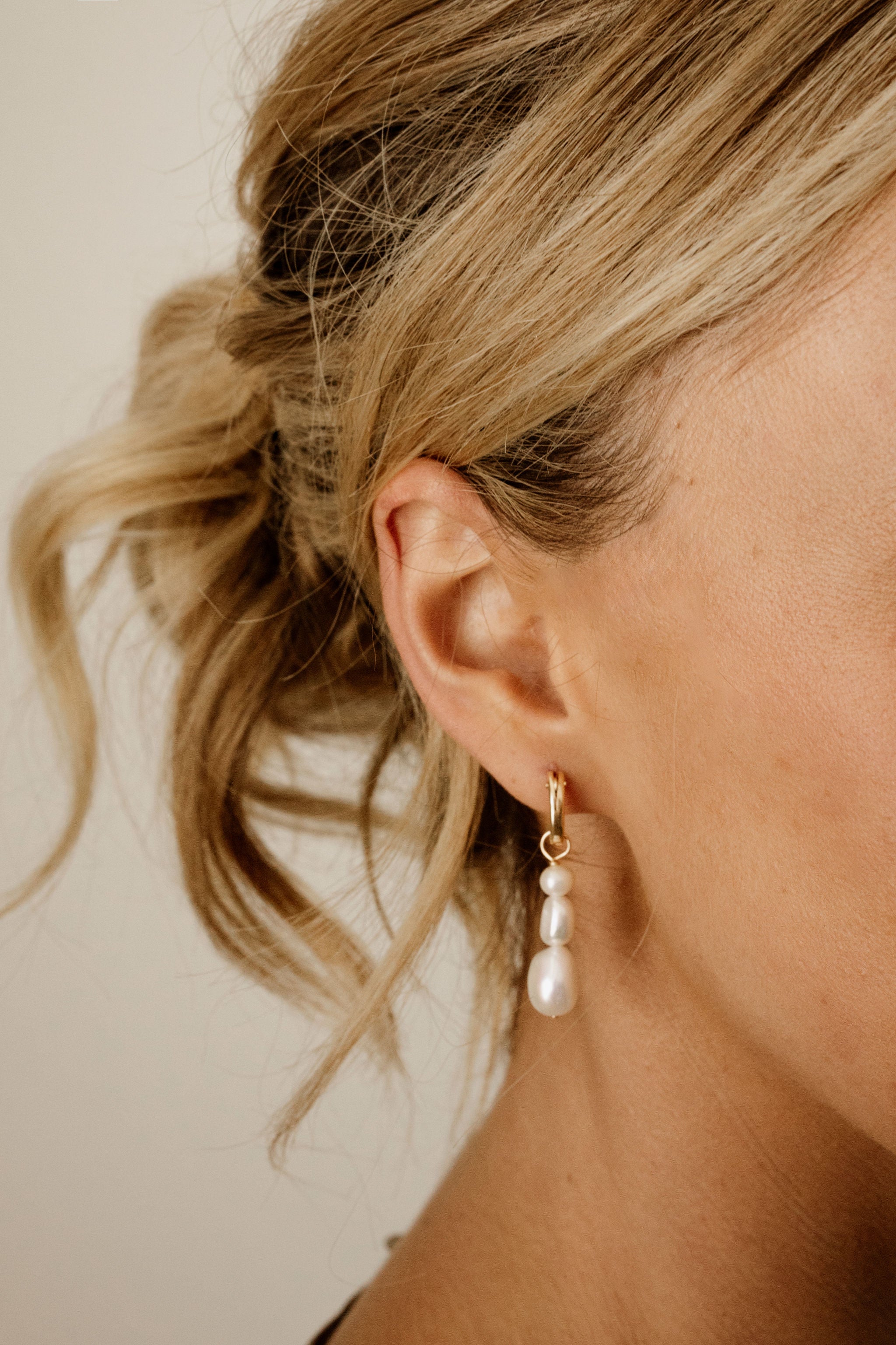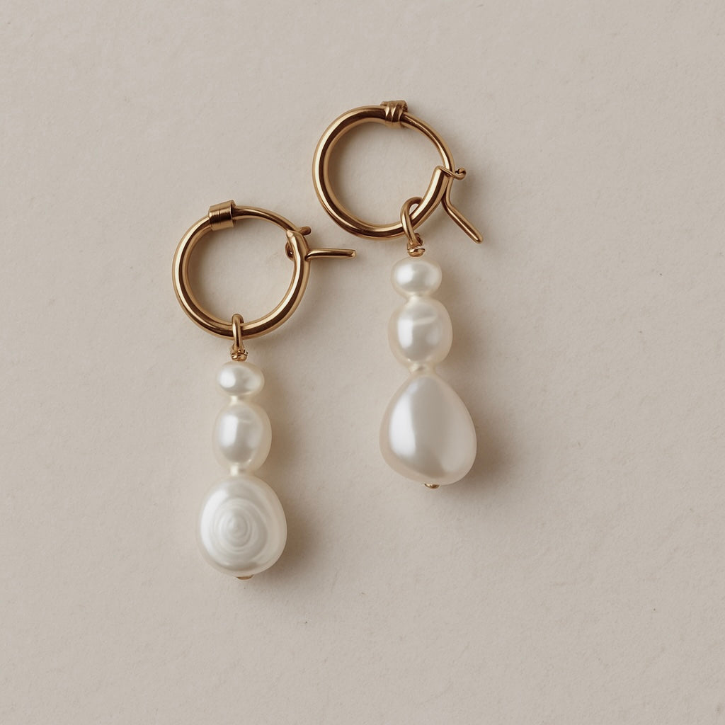 Hannah - Three different sized irregular freshwater baroque pearls strung together then hung on your choice of sterling silver or 14k gold filled hinged hoop. A stunning bridal choice.
