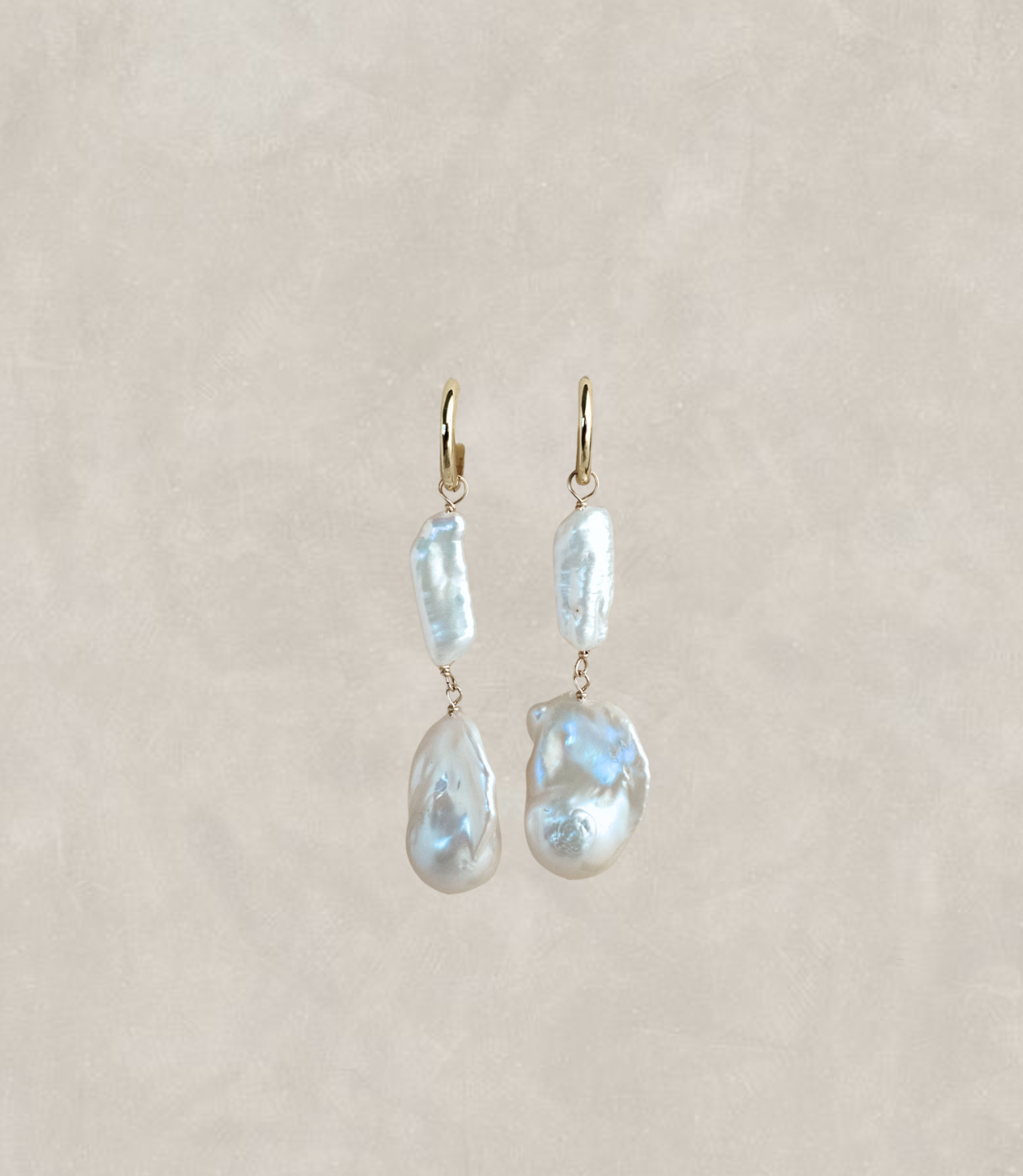 Haley - A force to be reckoned with. A new addition to our deluxe range. 15mm sterling silver or 14k gold filled hinged hoop featuring our famous nuclear baroque sitting nicely under a beautiful Biwa pearl. Strung separately for maximum movement. Dare to wear!