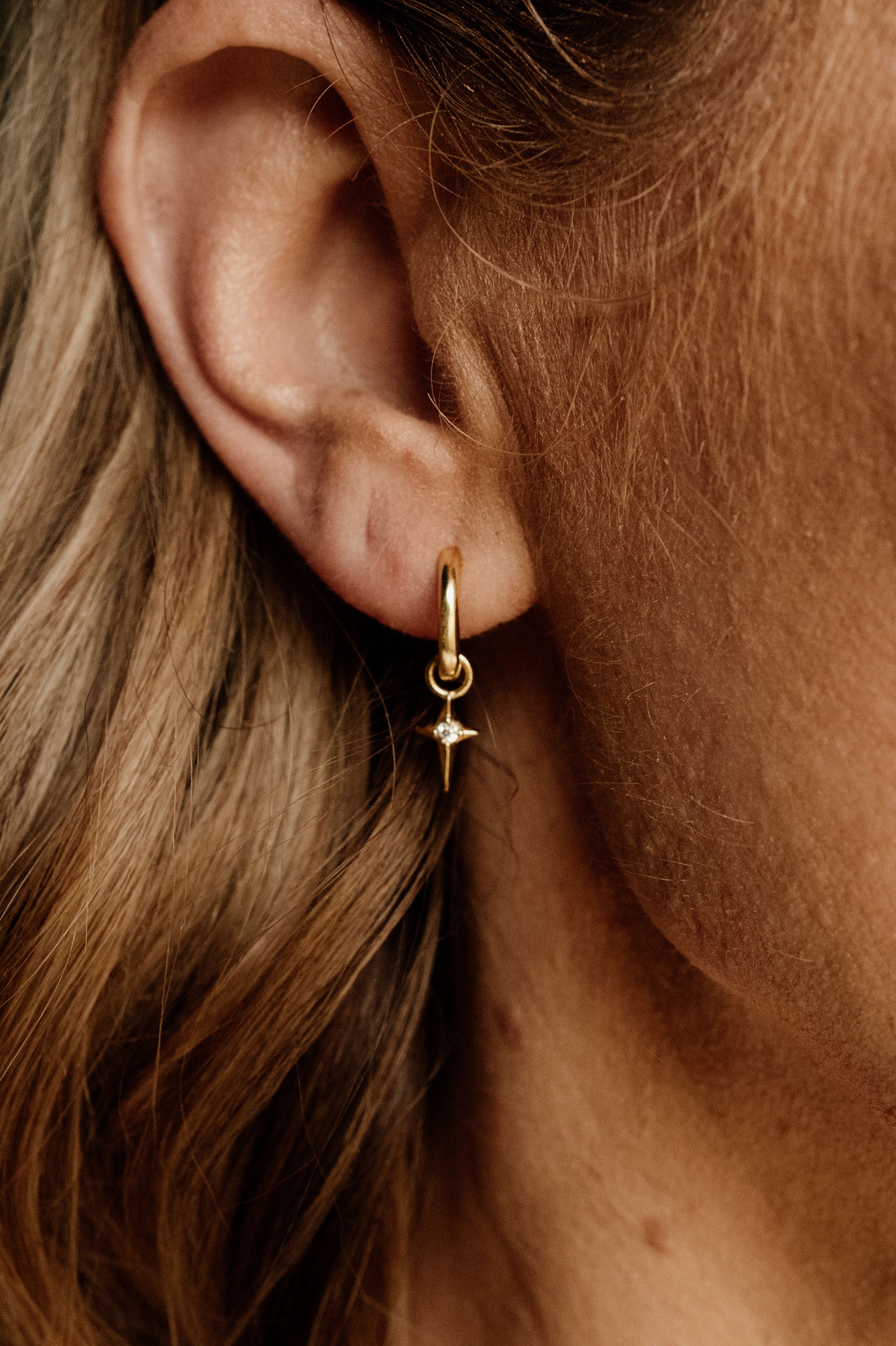 Elevate your jewelry collection with our stunning Starry Elegance Earrings, designed for the modern trendsetter. These exquisite gold or silver hoop earrings feature a delicate star-shaped drop embellished with a sparkling cubic zirconia, adding a touch of whimsical charm to any outfit.
