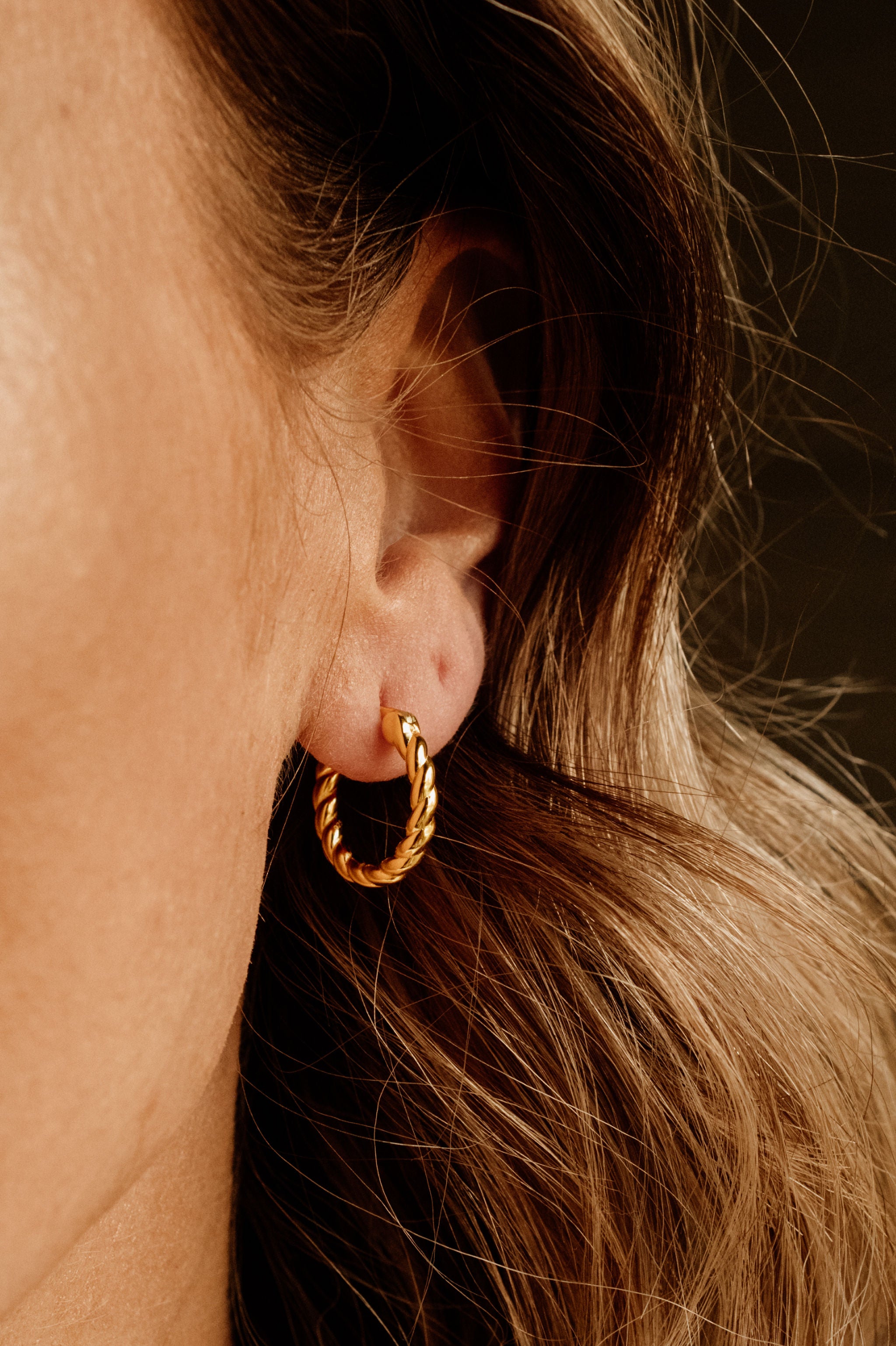 Elevate your GP collection with our exquisite JAZZLYN Twisted Gold Hoop Earrings. Perfectly crafted from high-quality sterling silver base then plated in 1 micron of 16k gold. These earrings feature an elegant twisted design that adds a touch of sophistication to any outfit.