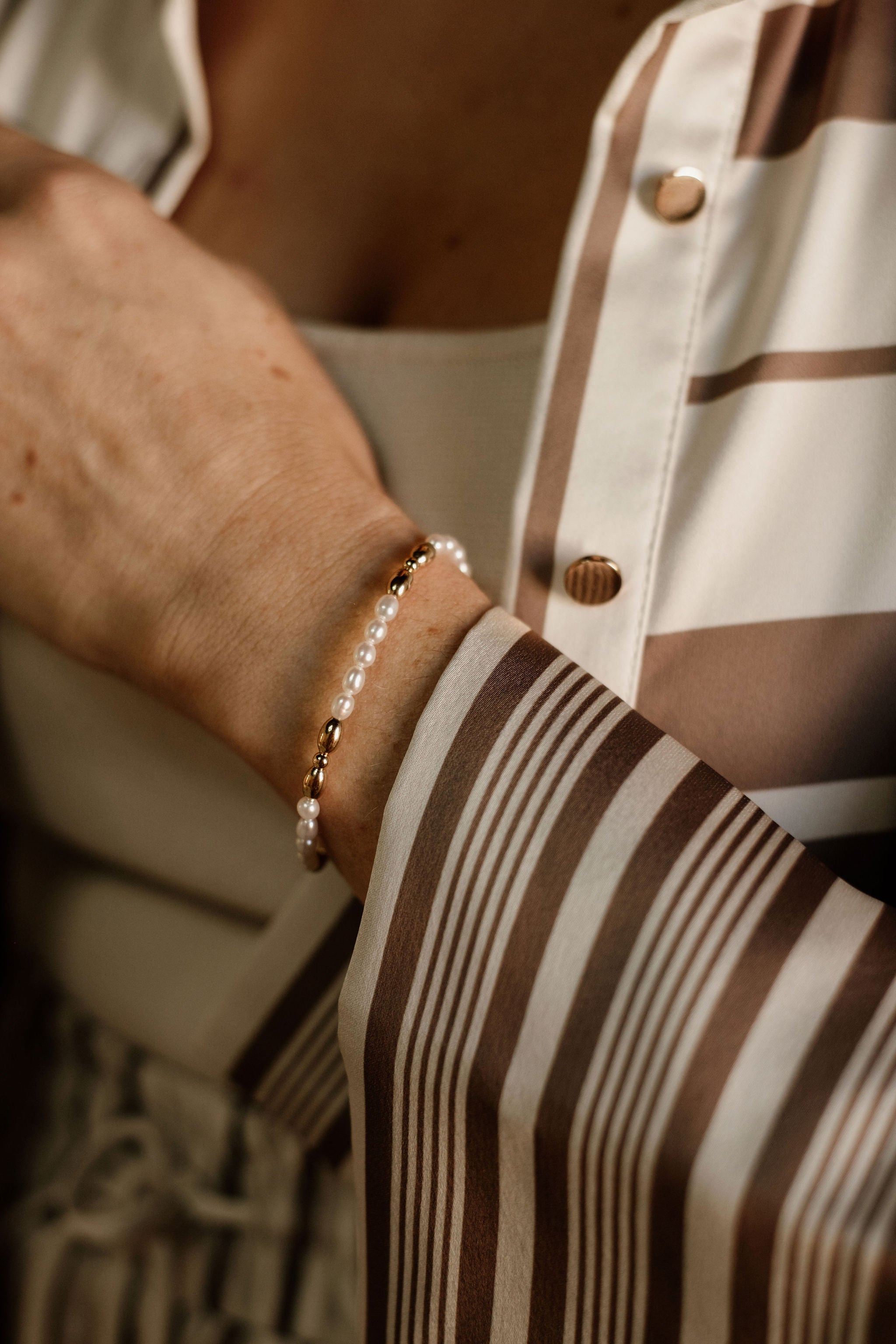 Elevate your style with our Juniper pearl bracelet, a perfect blend of classic elegance and modern sophistication. Crafted with attention to detail, this bracelet features lustrous freshwater pearls delicately interspersed with polished sterling silver or 14k gold filled beads, creating an eye-catching contrast that exudes timeless charm.