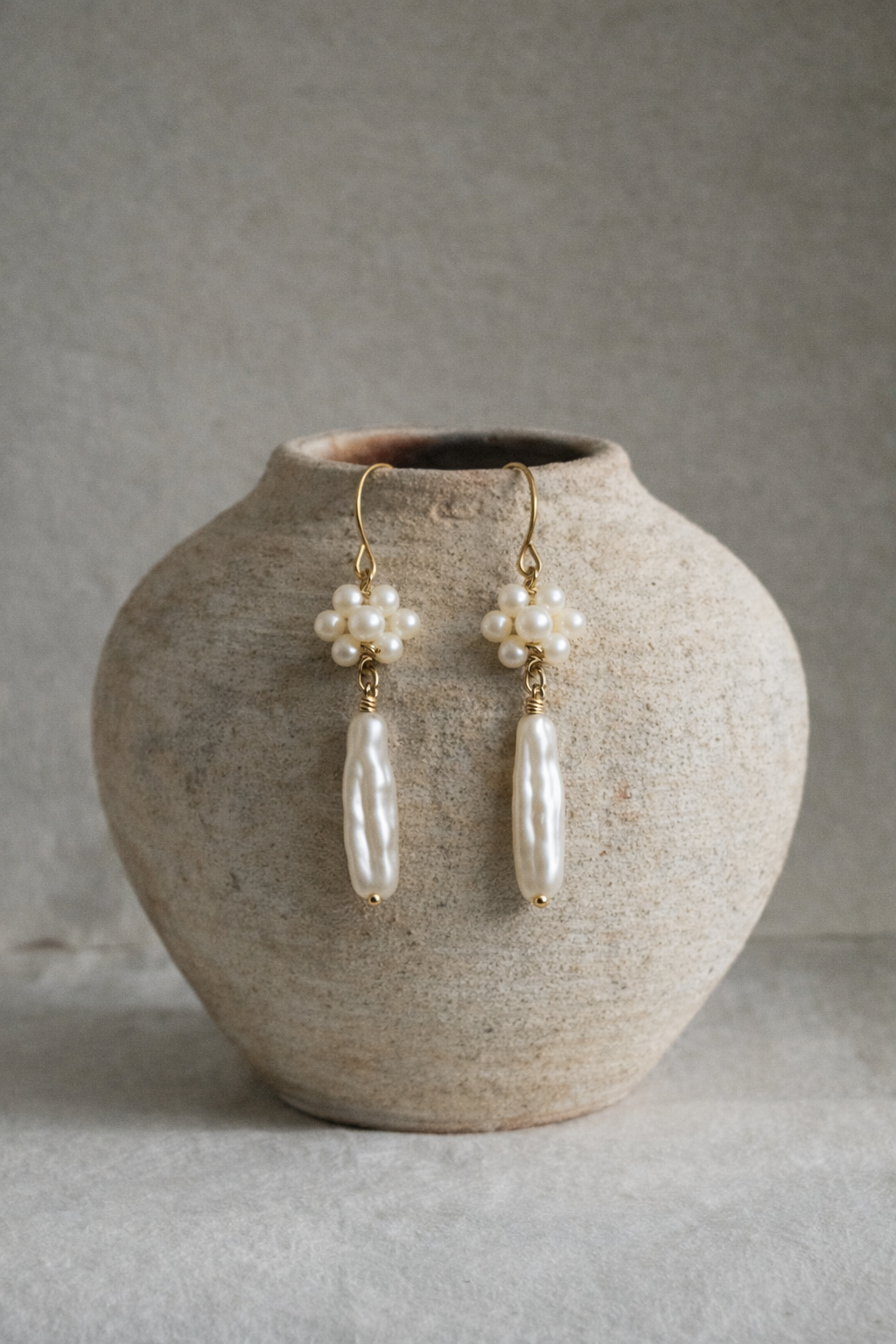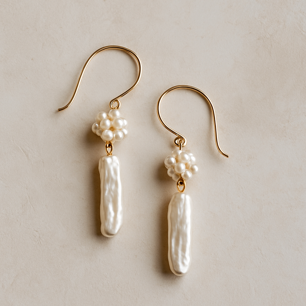 Elevate your style with our Sophisticated KIKI Baroque Pearl Drop Earrings. These earrings blend natural elegance with contemporary design, making them a perfect accessory for any occasion.