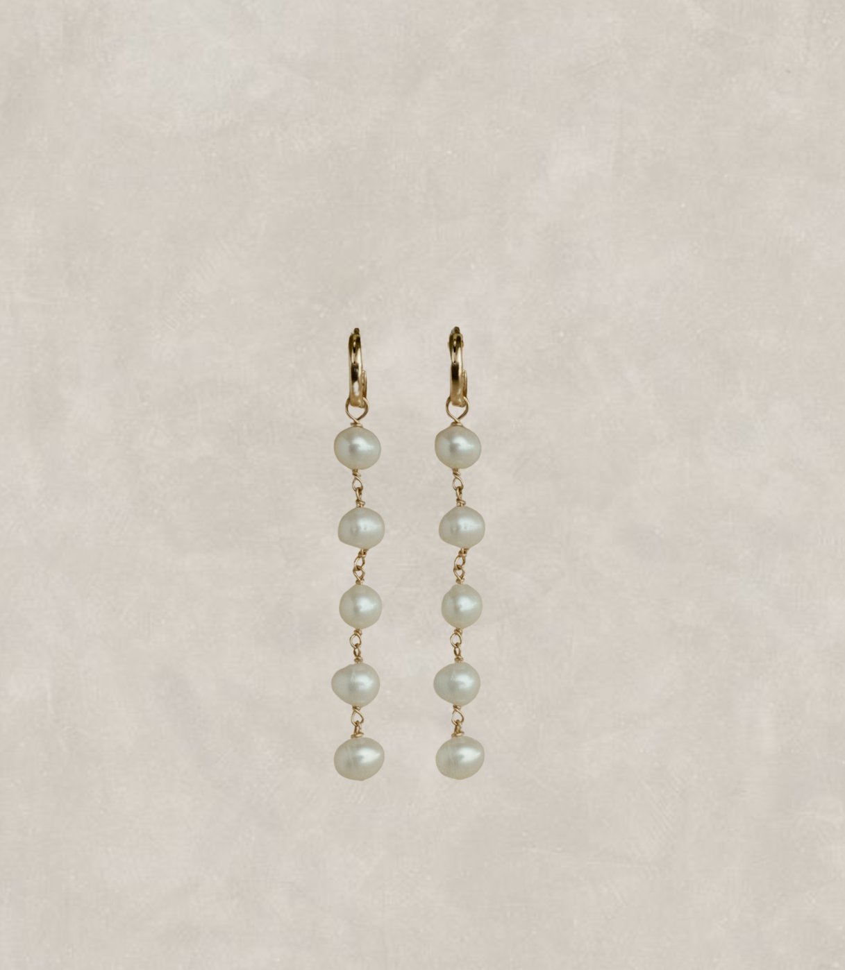 Elevate your accessory game with our stunning Lacey Pearl Drop Earrings. Crafted with lustrous, natural freshwater pearls delicately suspended on a shimmering gold-plated or sterling silver hoop, these earrings embody timeless sophistication.