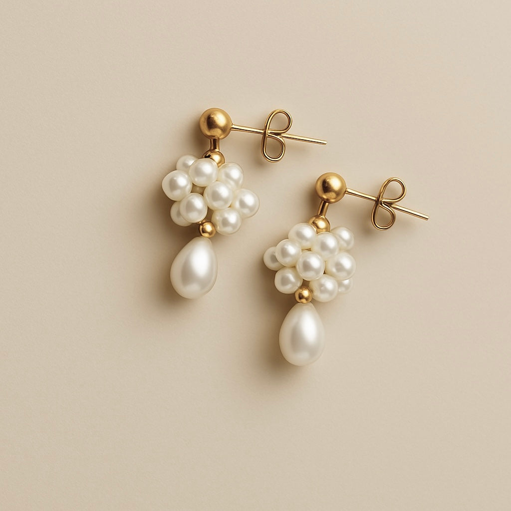 Discover effortless sophistication with our Elegant Pearl Cluster Stud Earrings. Perfectly crafted to complement any ensemble, these earrings are a must-have for jewellery lovers.
