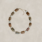 Elevate your accessory game with our stunning Louisa pearl x stone necklace, featuring a harmonious blend of natural stones and lustrous freshwater pearls.