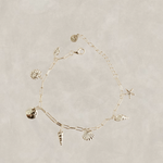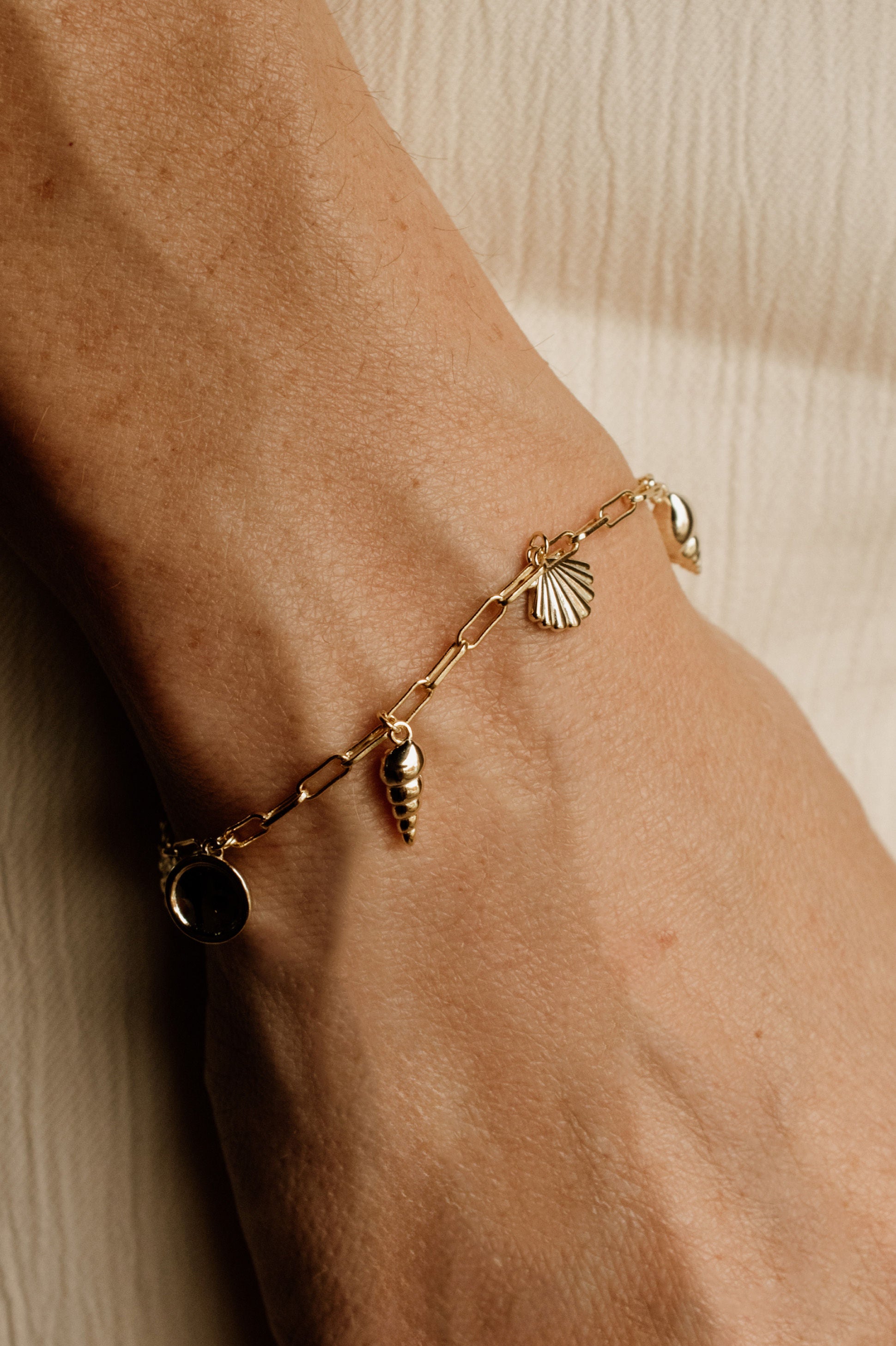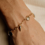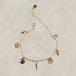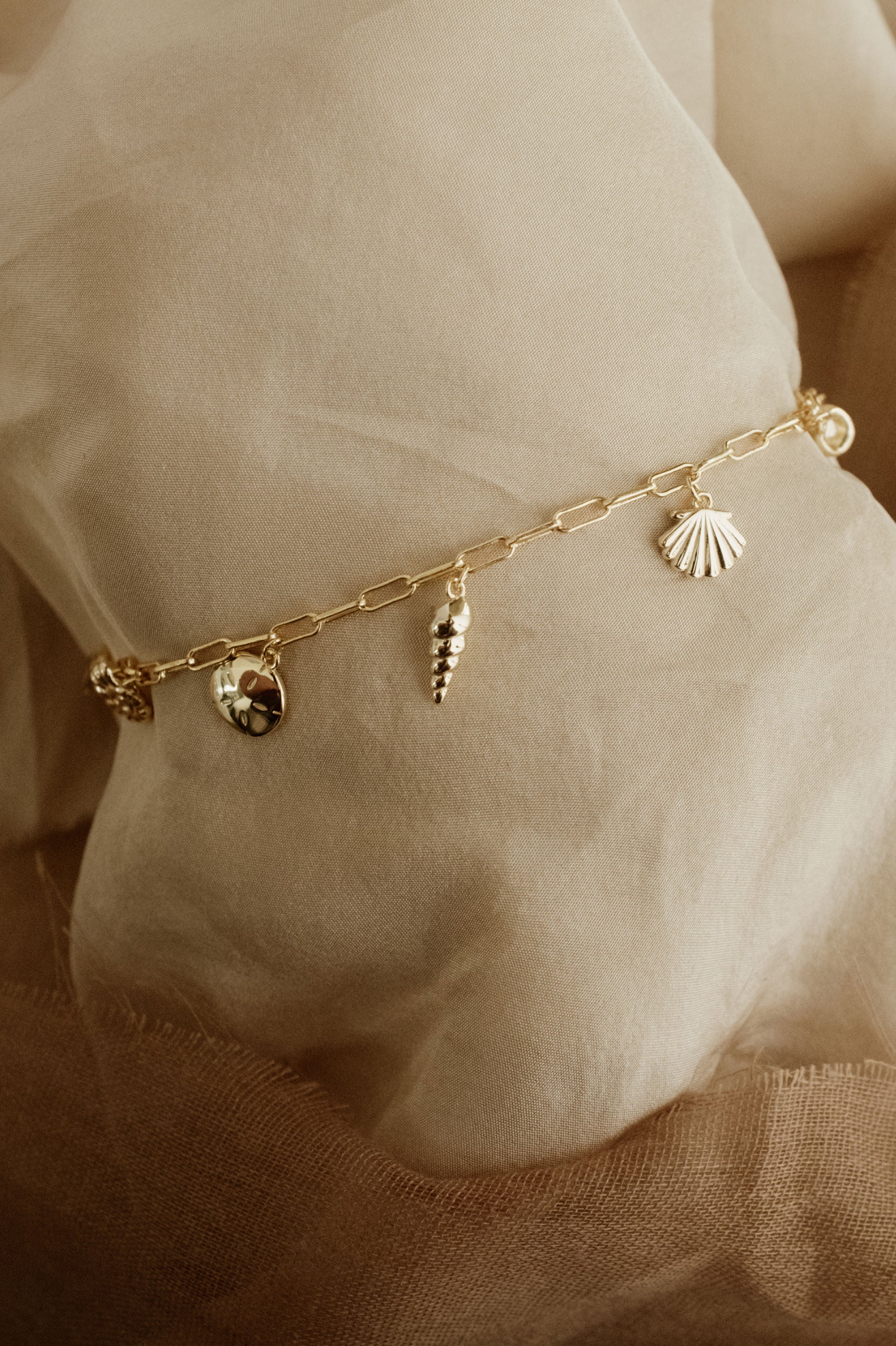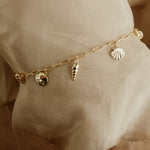 Elevate your accessory game with our enchanting Luca Seashell Charm Bracelet, a delightful piece designed for beach lovers and ocean enthusiasts alike. Crafted from high-quality gold or silver-tone metal, this bracelet features a delicate paperclip chain adorned with charming seashells, starfish, and ocean-inspired motifs. Match back with our Luca necklace