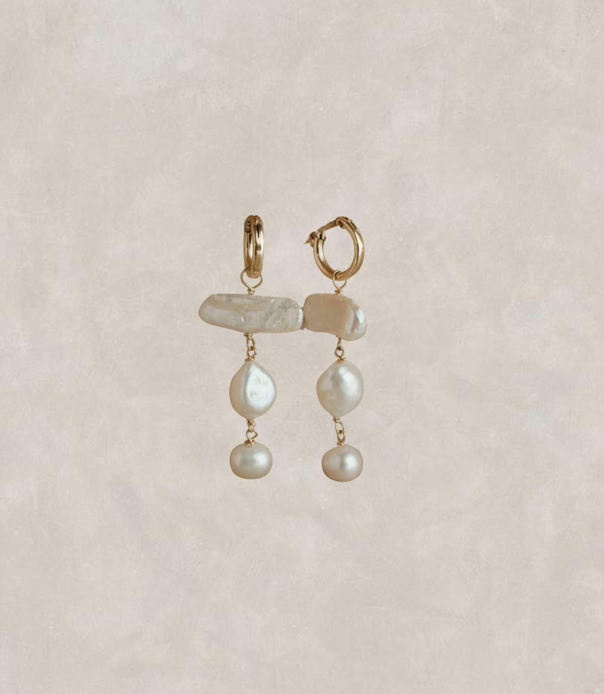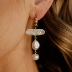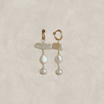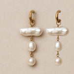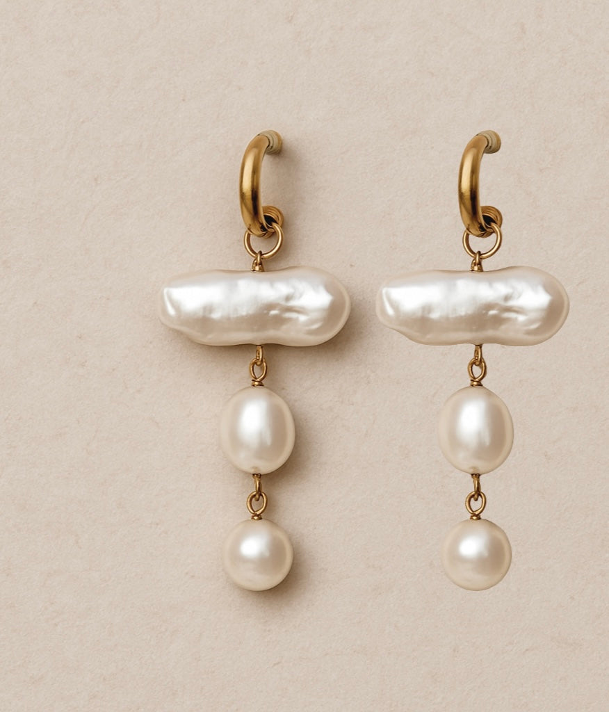 Elevate your accessory game with our stunning Maeve Pearl Drop Earrings, a perfect blend of sophistication and modern design. Crafted with meticulous attention to detail, these earrings feature a unique arrangement of natural pearls of different size and shape creating a harmonious look that complements any outfit.