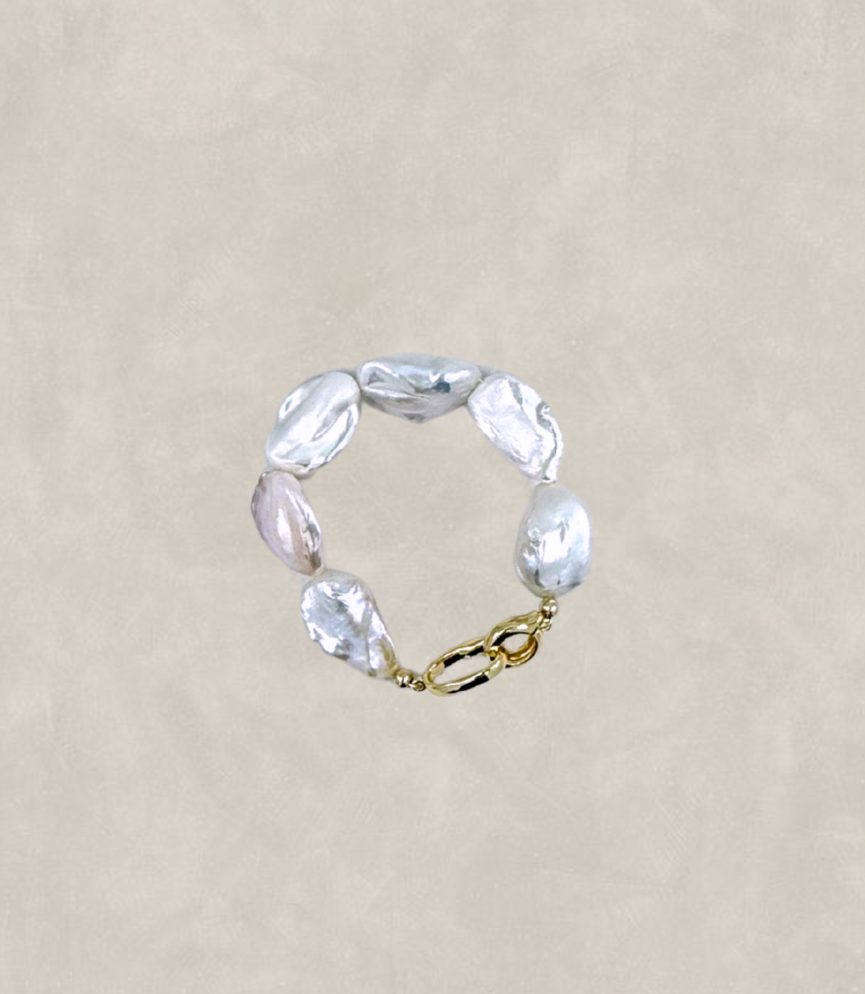 Embrace timeless elegance with our Keshi Pearl bracelet. Crafted with unique, naturally-shaped pearls, this bracelet adds a touch of sophistication to any look. Available in platinum or 14k gold plated clasp options.