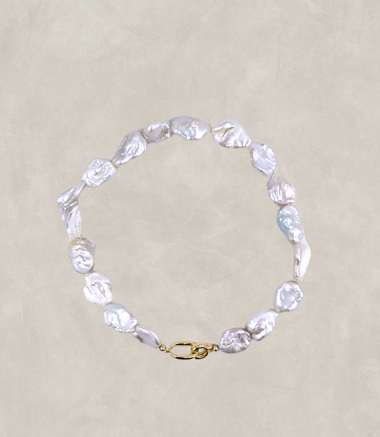 Embrace timeless elegance with our Keshi Pearl Necklace. Crafted with unique, naturally-shaped pearls, this necklace adds a touch of sophistication to any look. Available in platinum or 14k gold plated clasp options.
