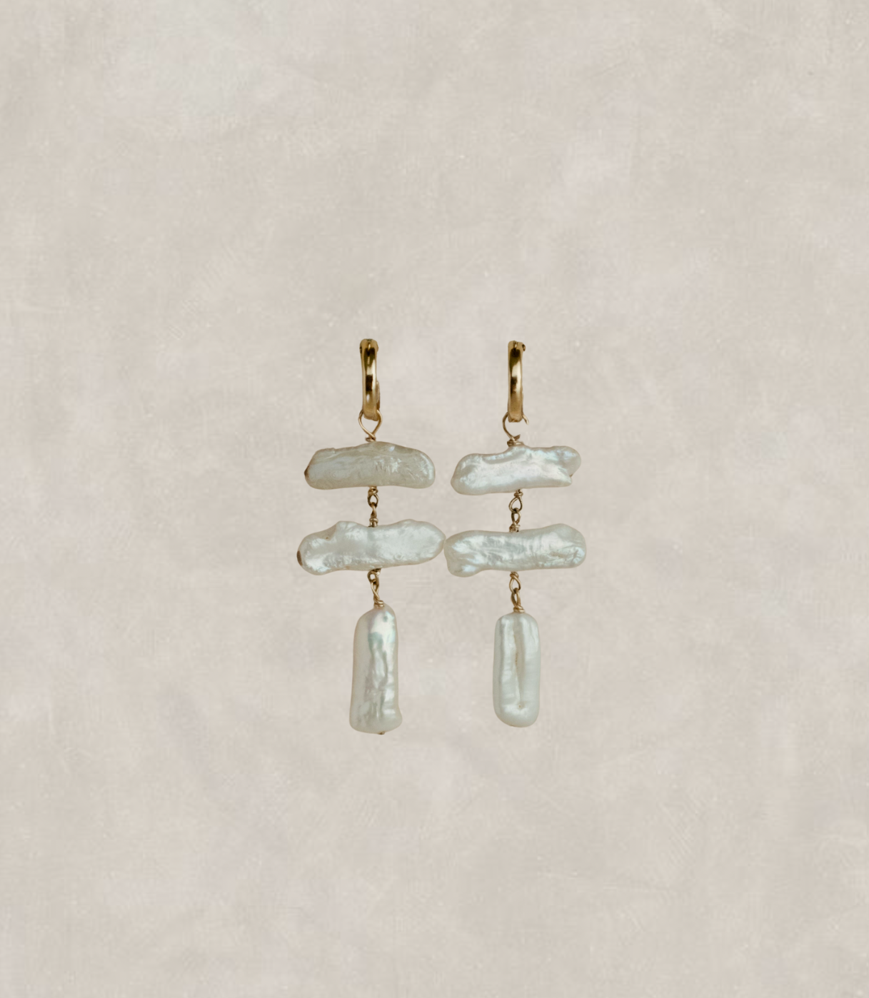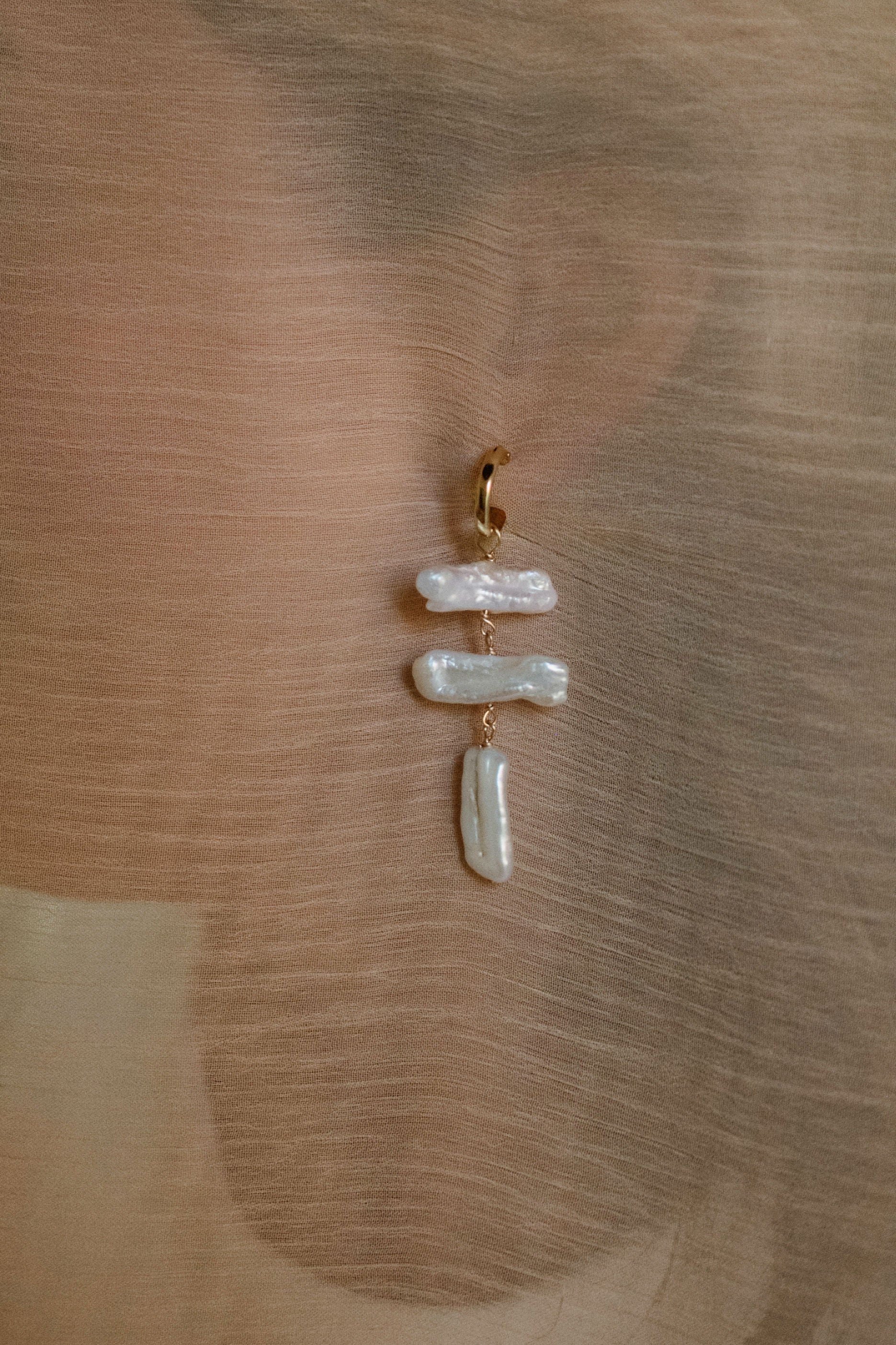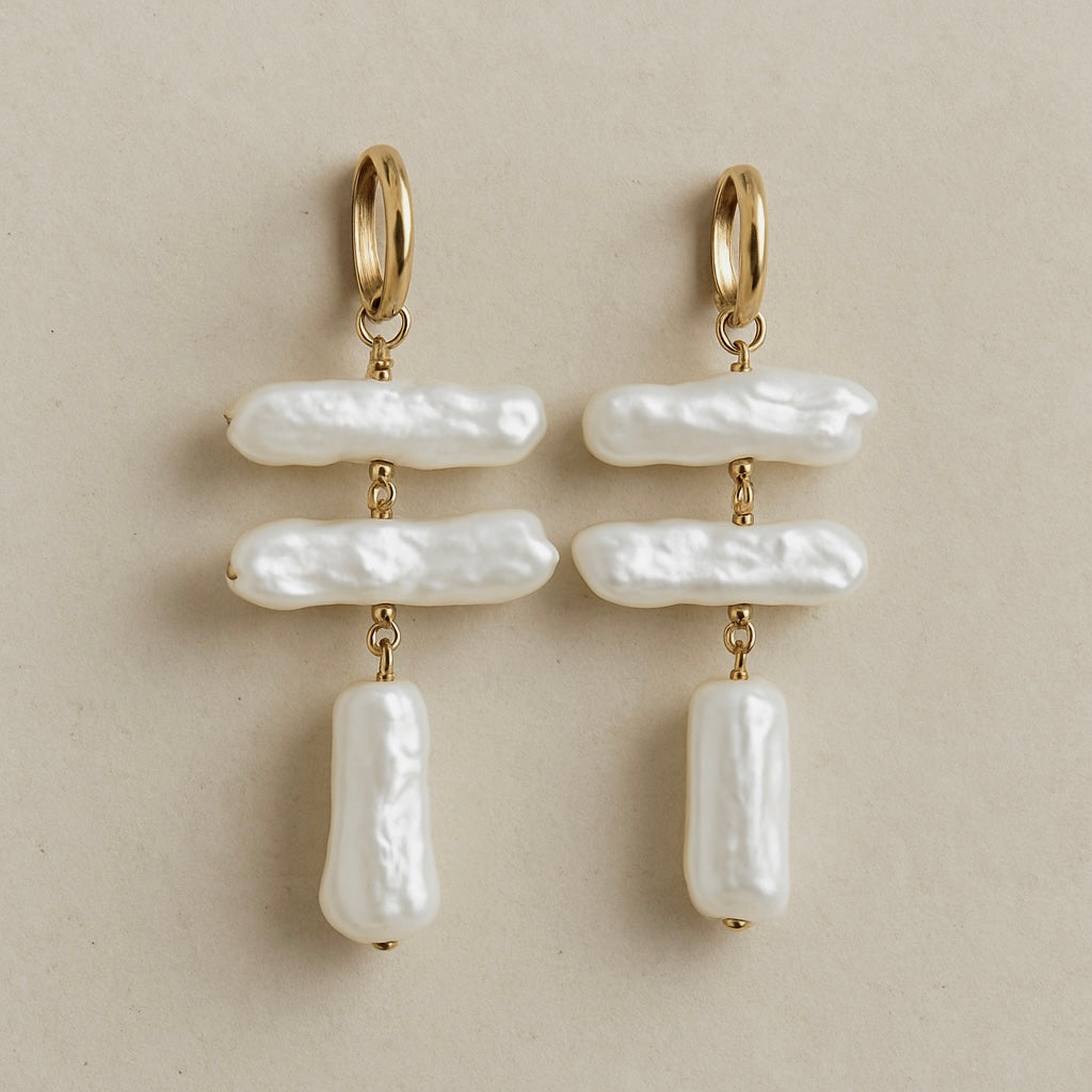 Discover timeless elegance with our stunning Nova Pearl Drop Earrings, expertly crafted to enhance your style. These earrings feature a unique design of irregular, lustrous freshwater pearls that cascade gracefully, embodying a perfect blend of modern artistry and classic beauty.