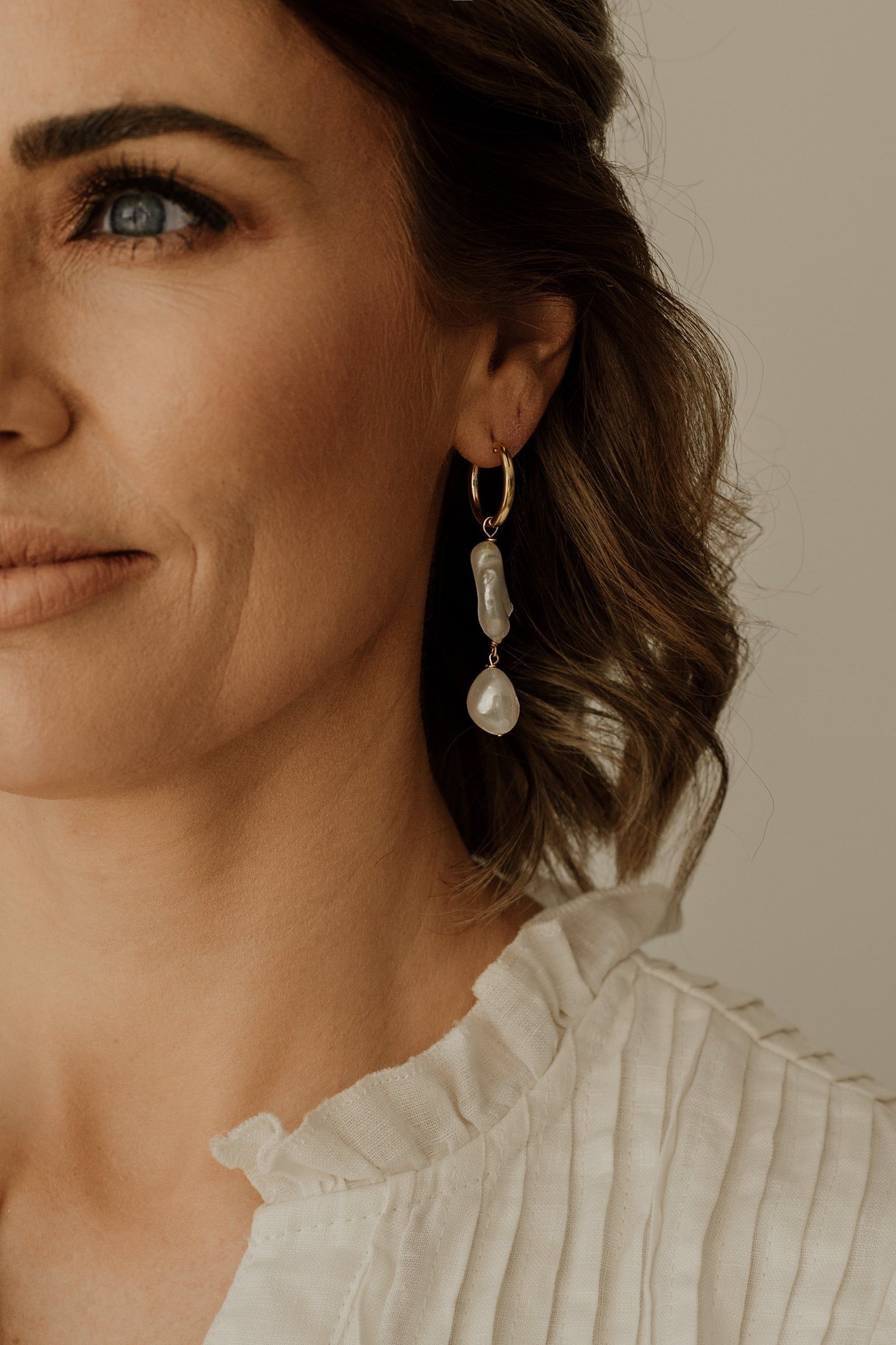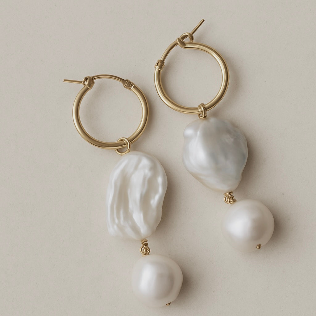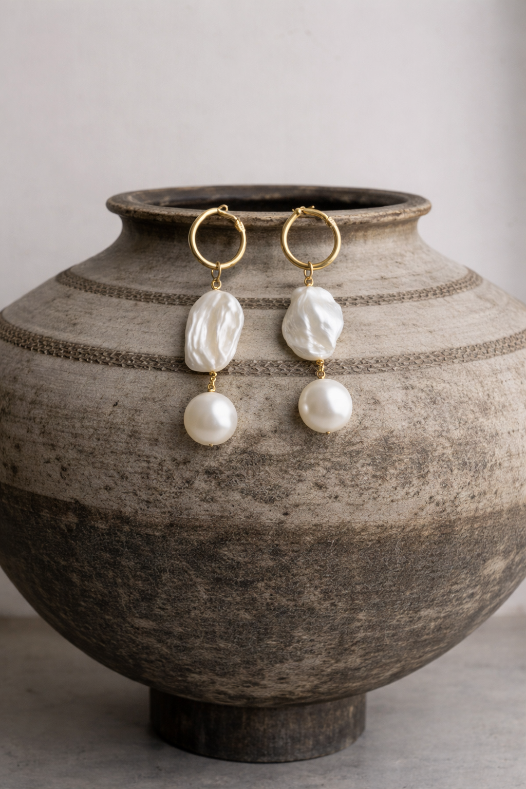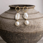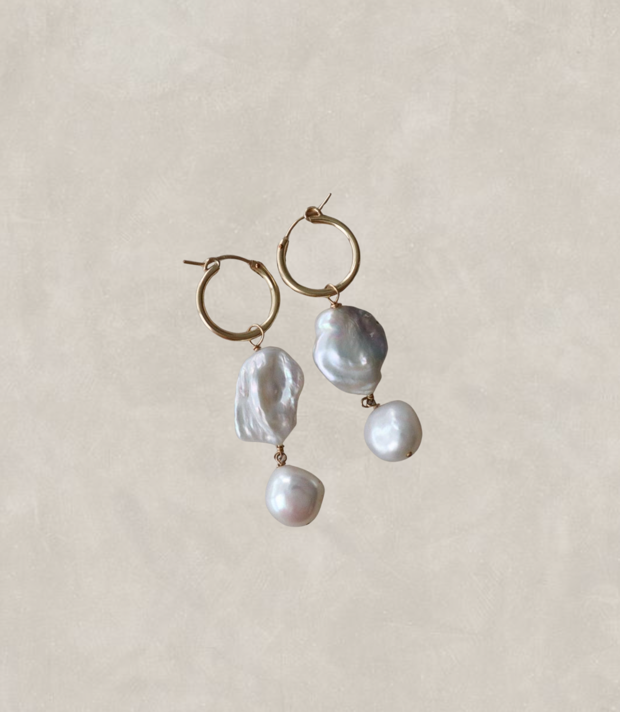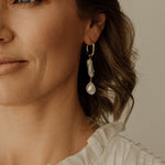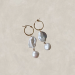 Lettie - What a beauty. Still subtle but so much style. Keshi pearl paired with medium to large irregular baroque pearl drop. 20mm hinged hoop or lever back options in sterling silver or 14k gold filled.
