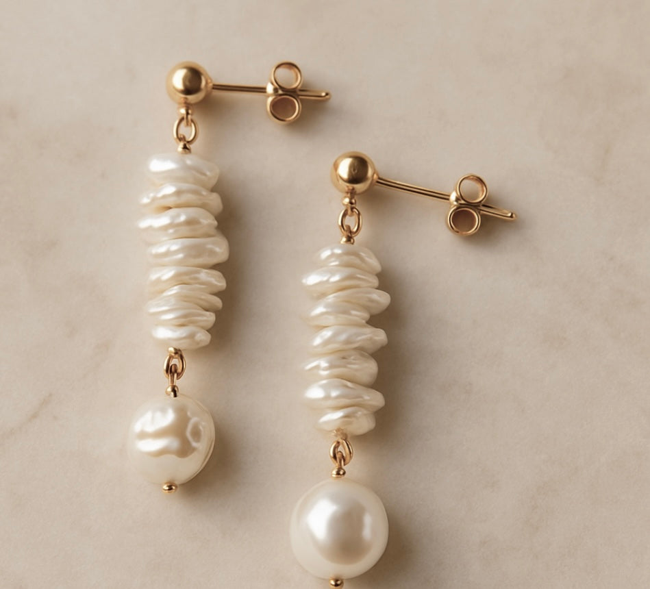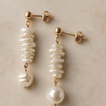 Elevate your style with our stunning PEONY Cascade Earrings, a perfect blend of timeless elegance and modern sophistication. These earrings feature a graceful arrangement of lustrous Keshi petal pearls and irregular baroque pearls, elegantly dangling to catch the light with every movement.