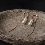 Sally thread earrings - Two 8-9mm freshwater baroque pearls hung from sterling silver or 14k gold filled u-bar thread earrings. Match back with our Savannah anklet, bracelet & necklace.