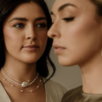 Polly - A perfect combination of tiny freshwater pearls and extra large nuclear baroque pearl feature. Wear her alone or layer her up for extra impact.