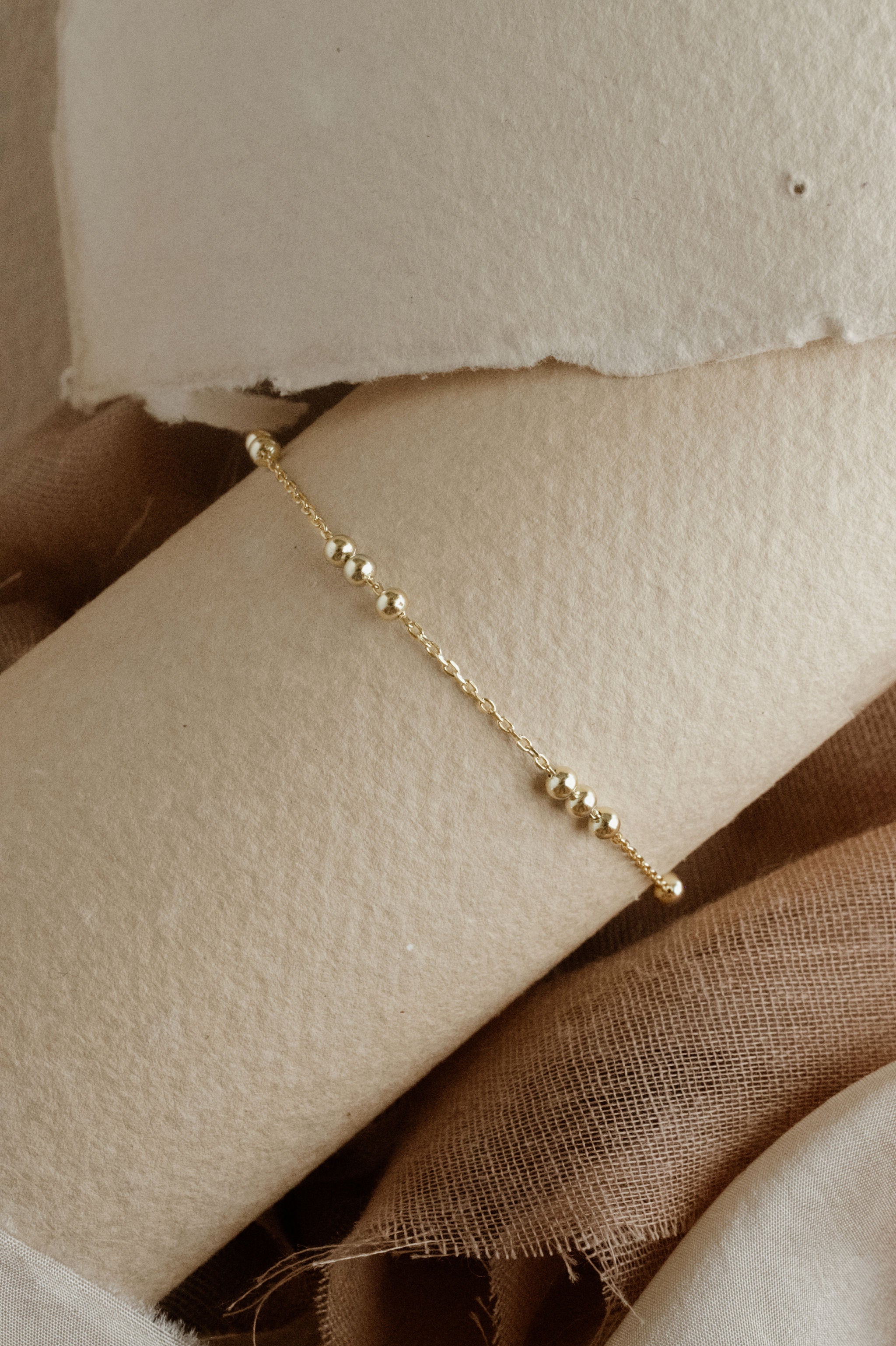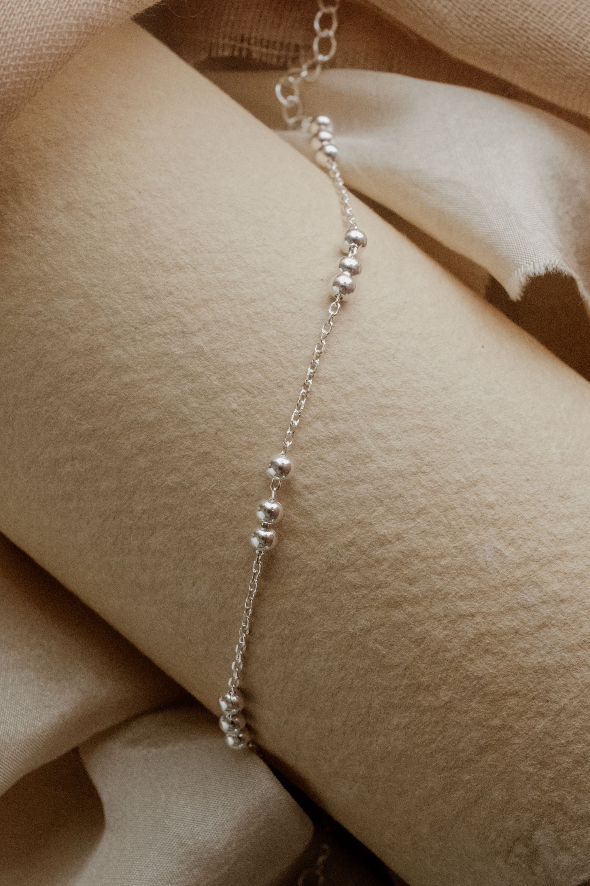 Elevate your accessory game with our stunning Poppy Bead Bracelet. Crafted from high-quality metals, this delicate piece features a stylish chain adorned with evenly spaced polished beads that reflect light beautifully.