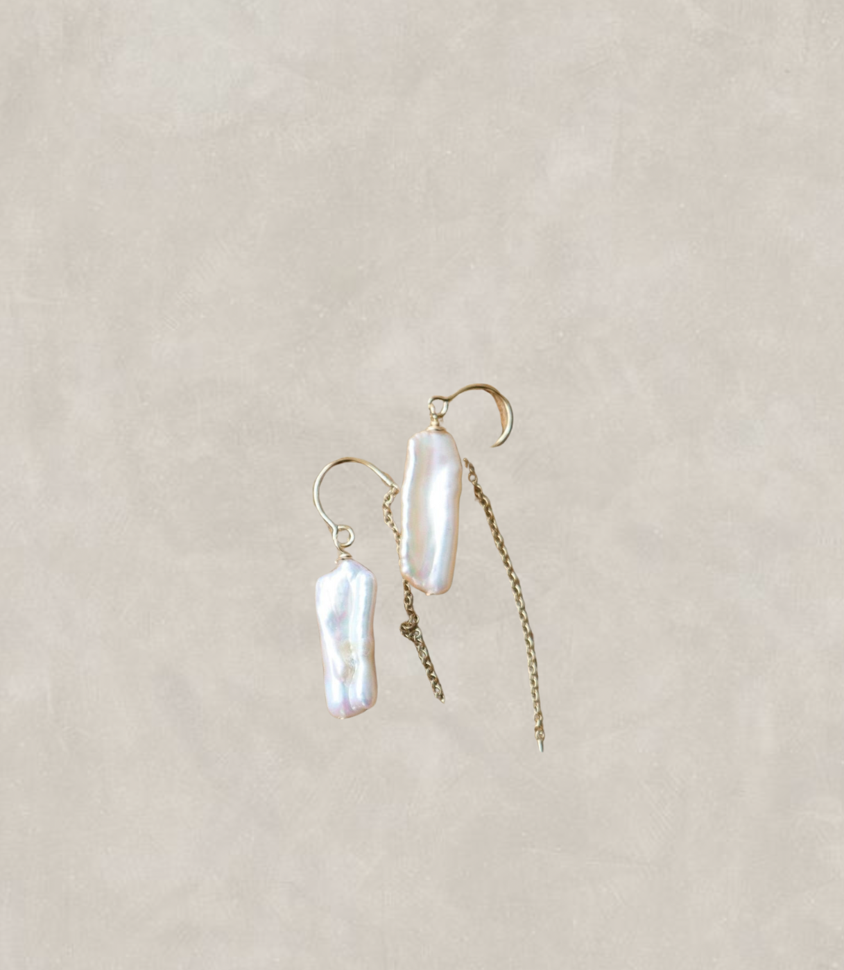 Riley - Small to medium freshwater Biwa pearl hung on sterling silver or 14k gold filled u-bar thread earring. Match back with our Rosemary necklace, bracelet and anklet.