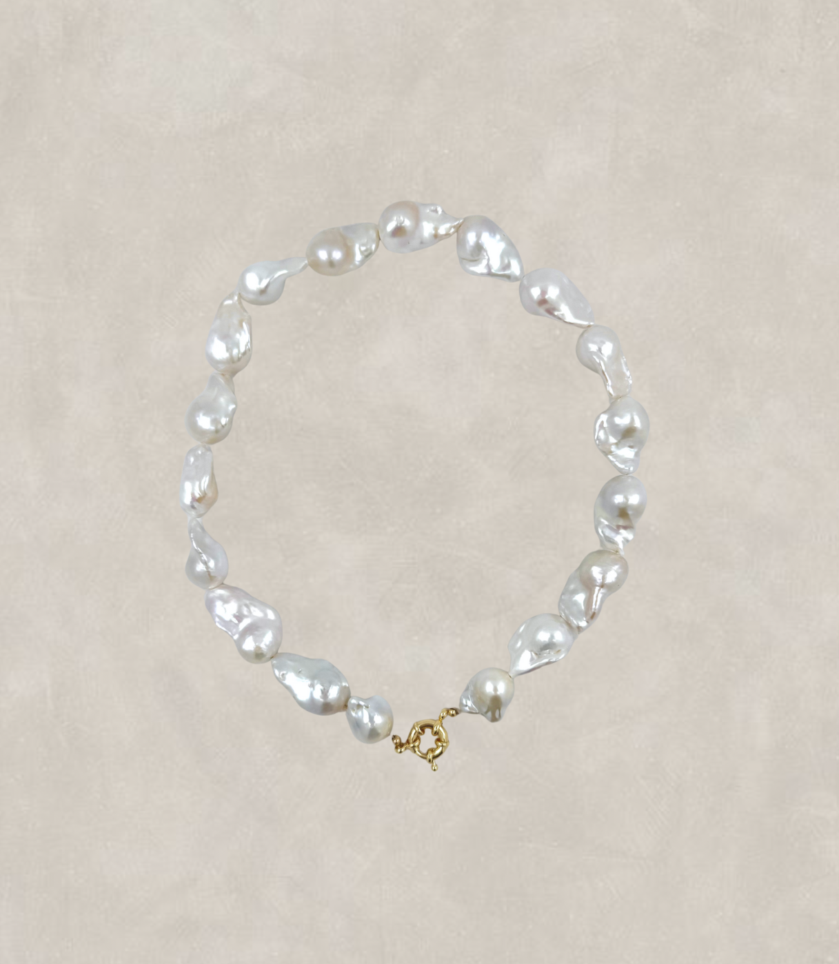 Elevate your style with our Rory Baroque Pearl Necklace, a stunning statement piece that showcases the natural beauty of irregularly shaped nuclear fireball baroque pearls. Each unique pearl shines with its ludicrous finish, ensuring your look is both elegant and distinctive.
