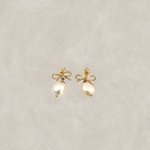 Embrace classic sophistication with our Sandy Bow Stud Pearl Earrings, seamlessly blending charm and elegance. The delicate bow design paired with lustrous pearls makes these studs a perfect pairing for any occasion.
