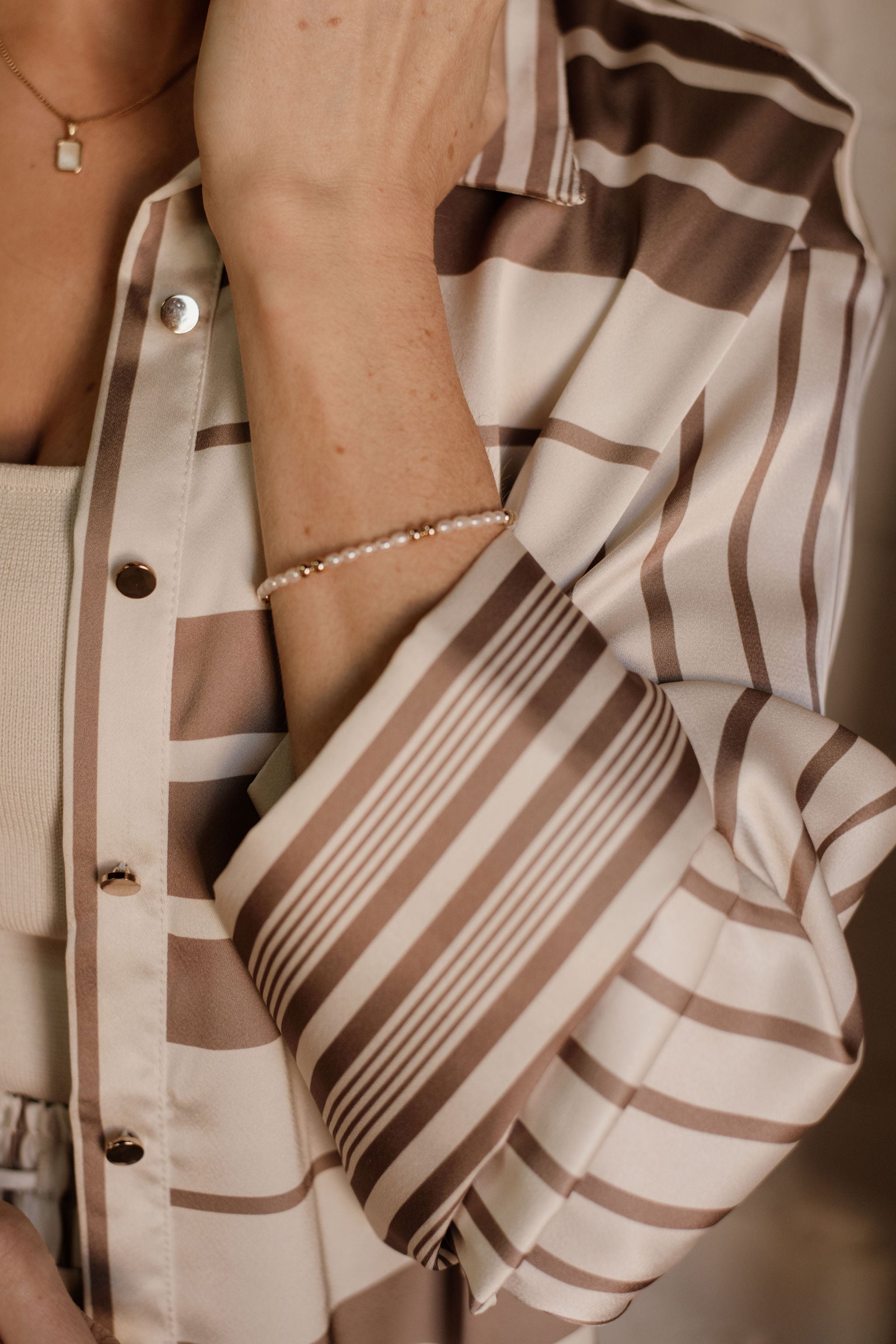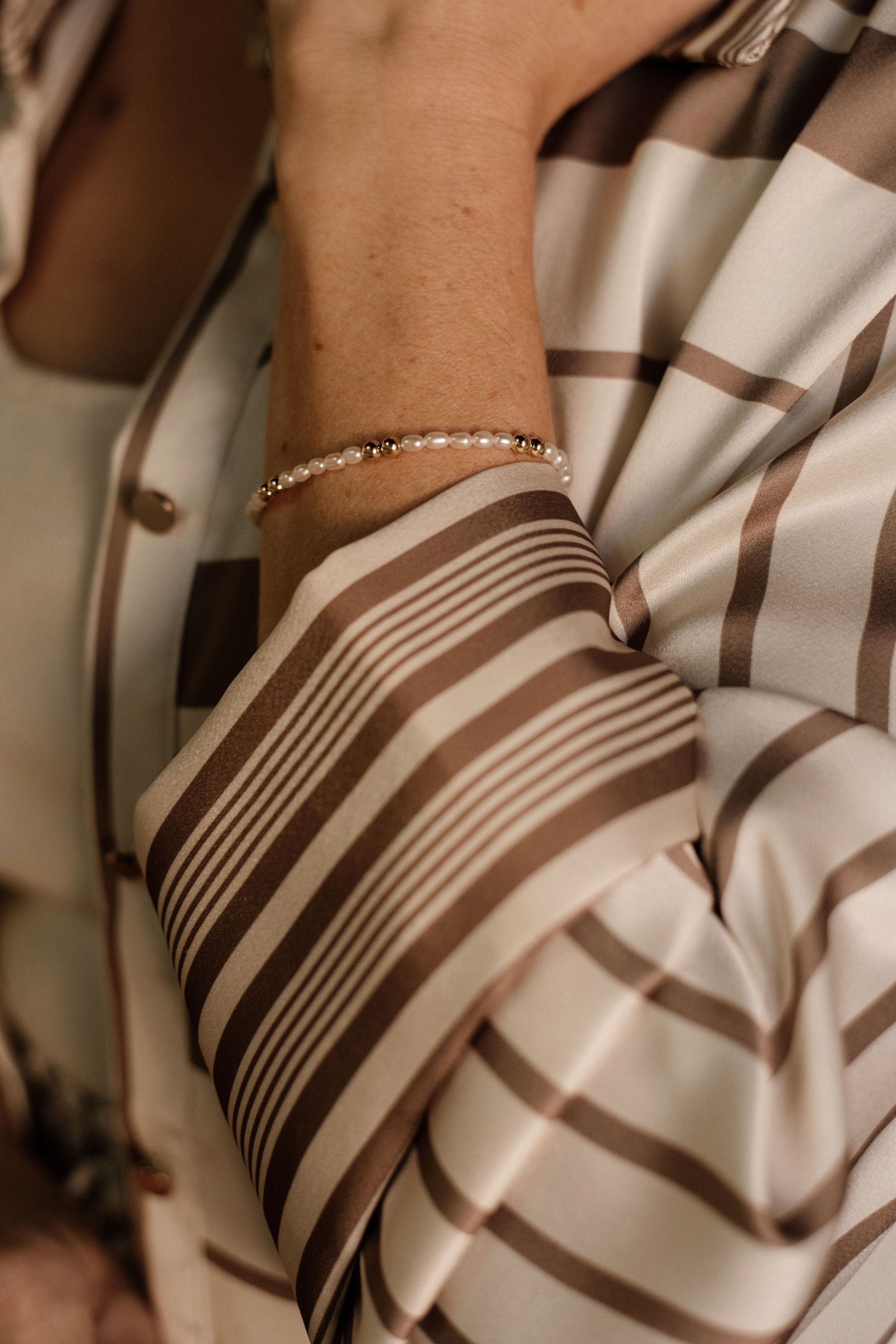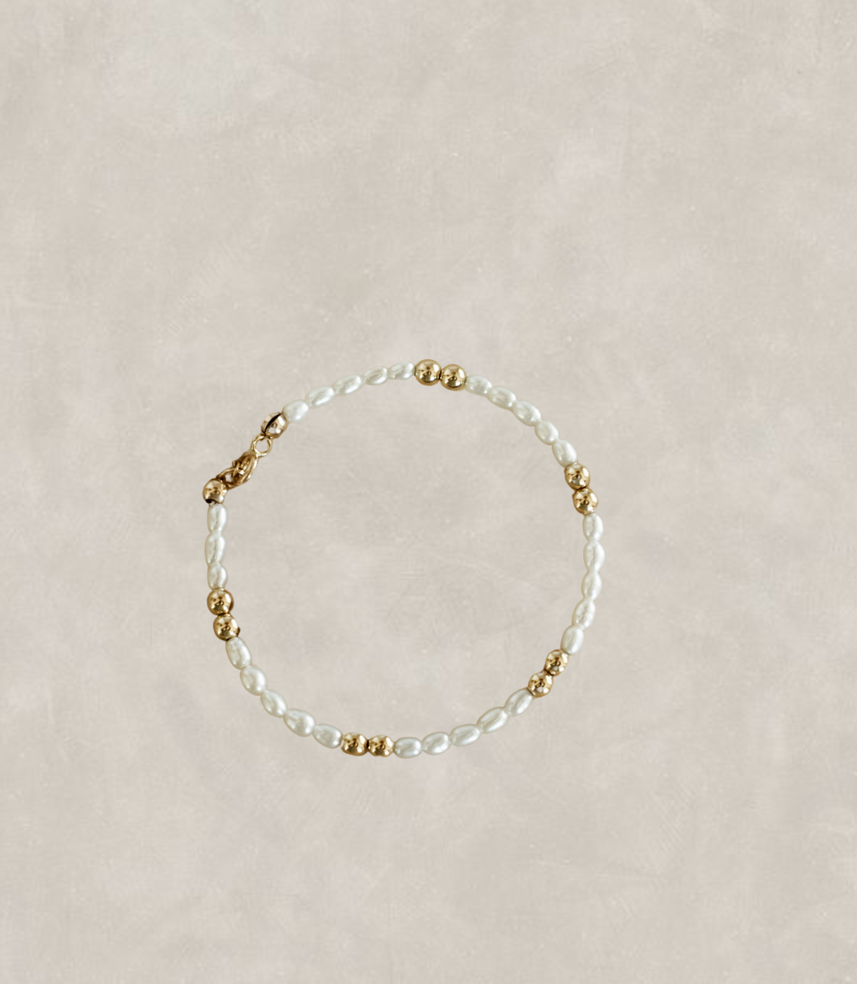 Elevate your style with our Sarah bracelet, a perfect blend of classic elegance and modern sophistication. Crafted with attention to detail, this bracelet features lustrous freshwater pearls delicately interspersed with polished sterling silver or 14k gold filled beads, creating an eye-catching contrast that exudes timeless elegance.