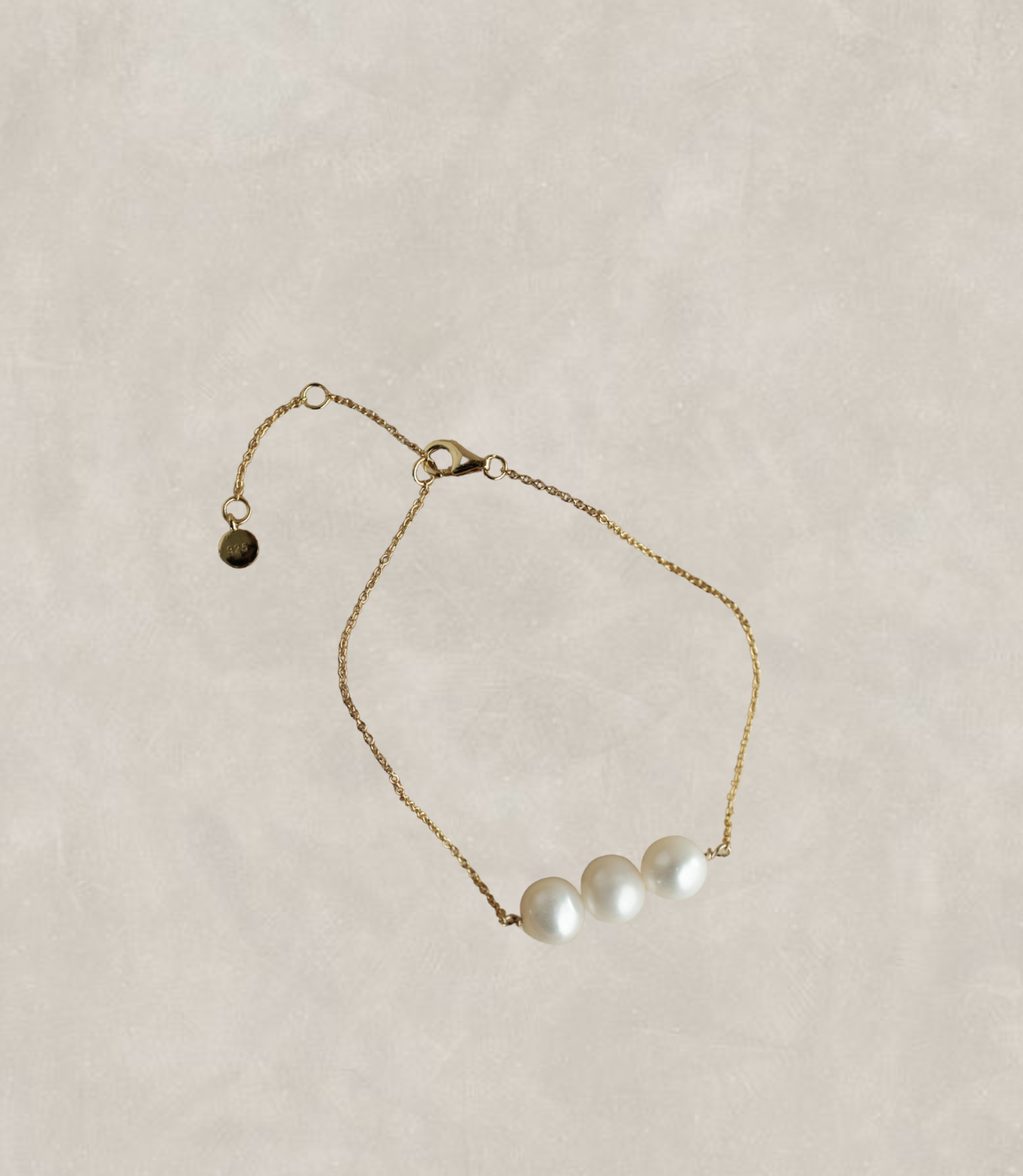 Savannah Bracelet - Three medium irregular baroque pearls floated on your choice of sterling silver or 14k Gold Filled 1.5mm chain.
