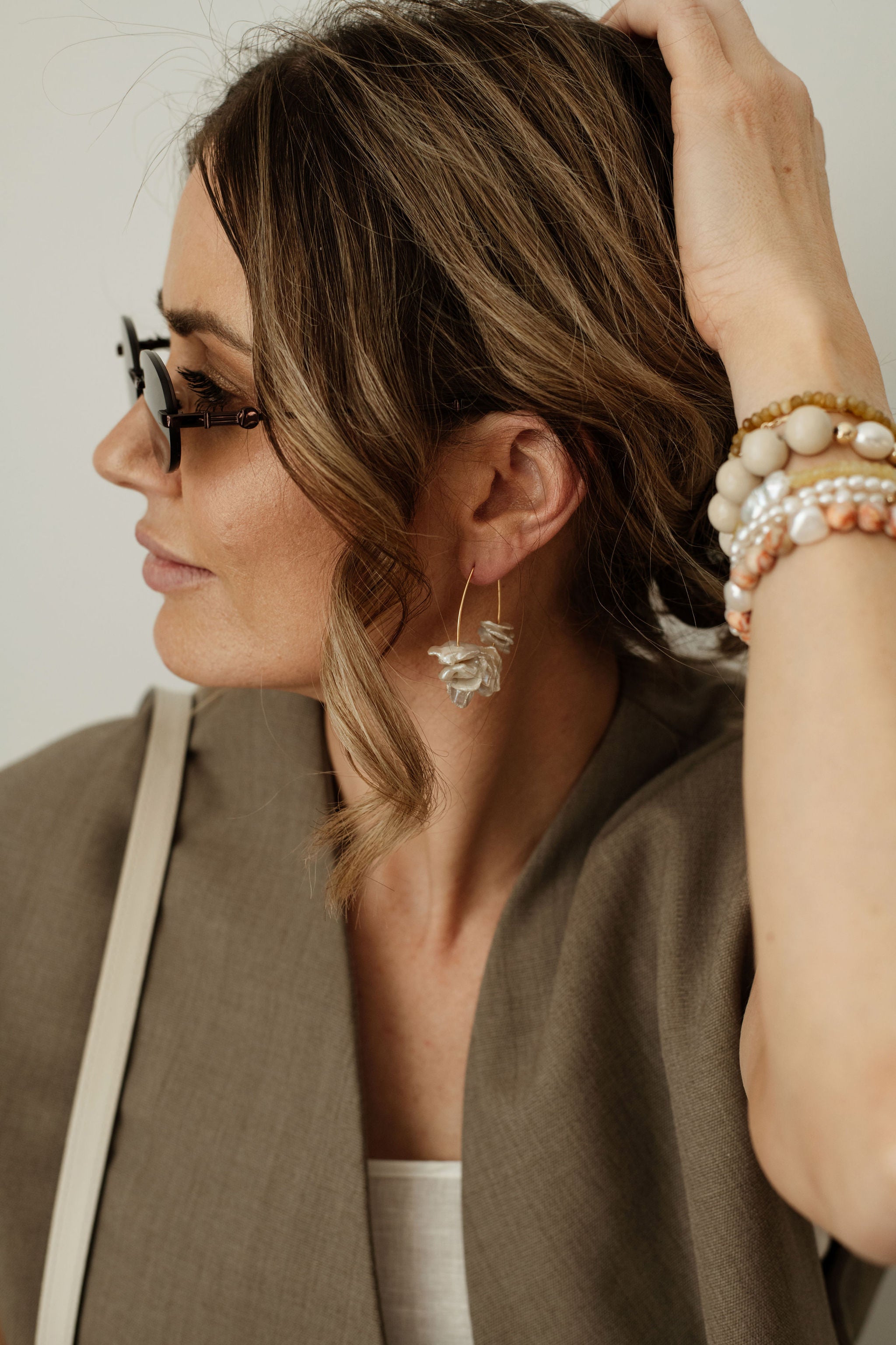 Discover the beauty of our Peyton Stone X Pearl Bracelet, a unique accessory that perfectly blends organic warmth and modern style. This bracelet is crafted with earthy-toned beads, accented with luminous pearls, offering an eye-catching contrast.