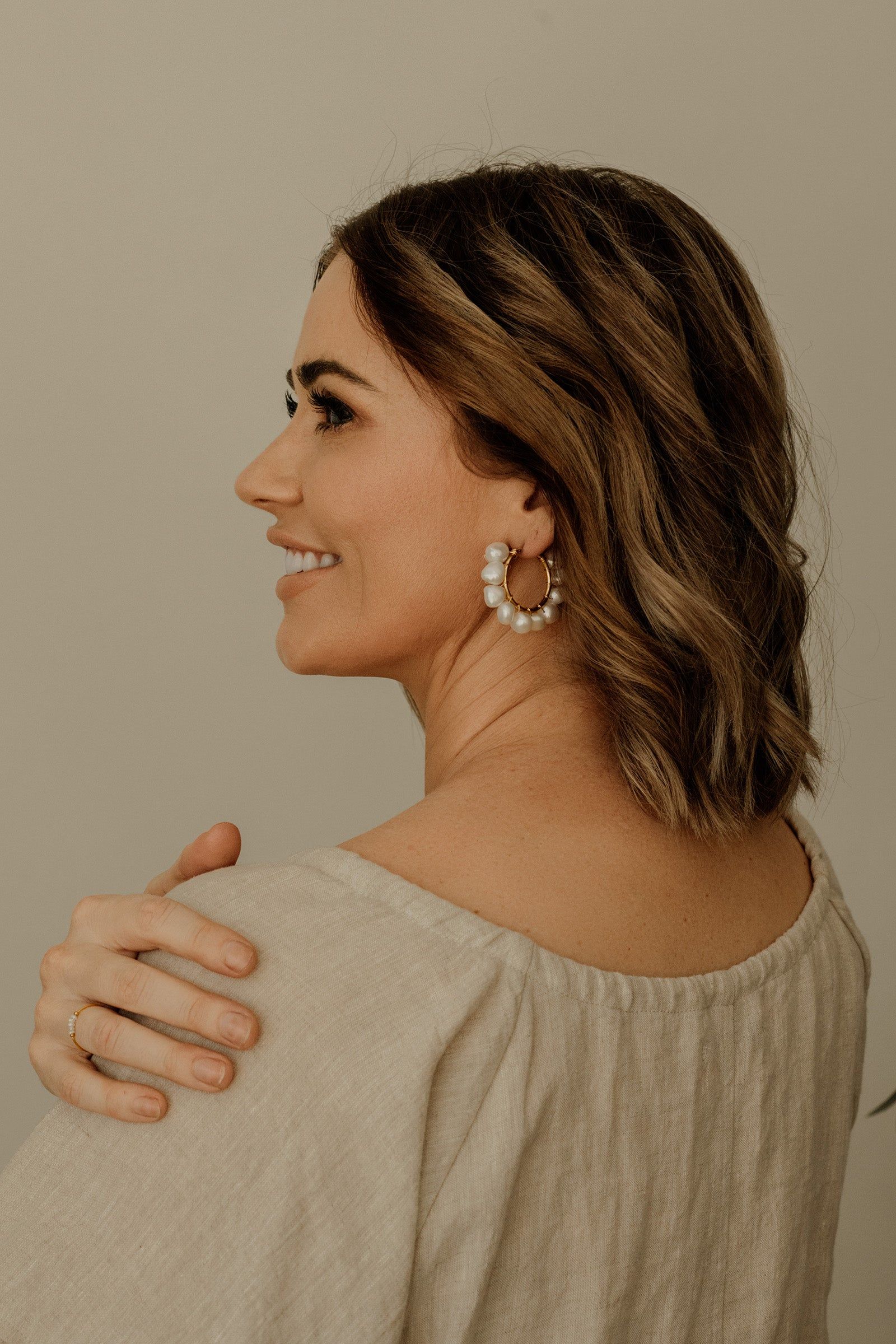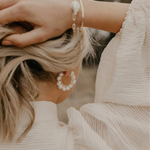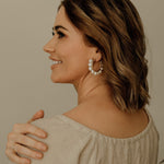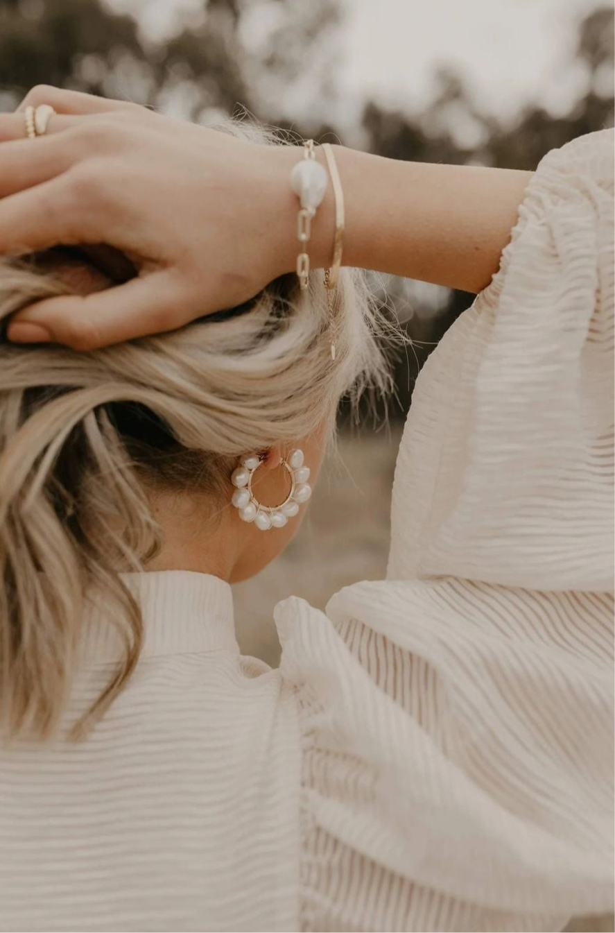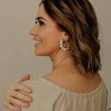 Scout is a stunning piece that will have you receiving compliments every time you wear her. Featuring medium freshwater baroque pearls wrapped around a 25mm hinged hoop in your choice of sterling silver, 14k gold filled or rose gold filled.